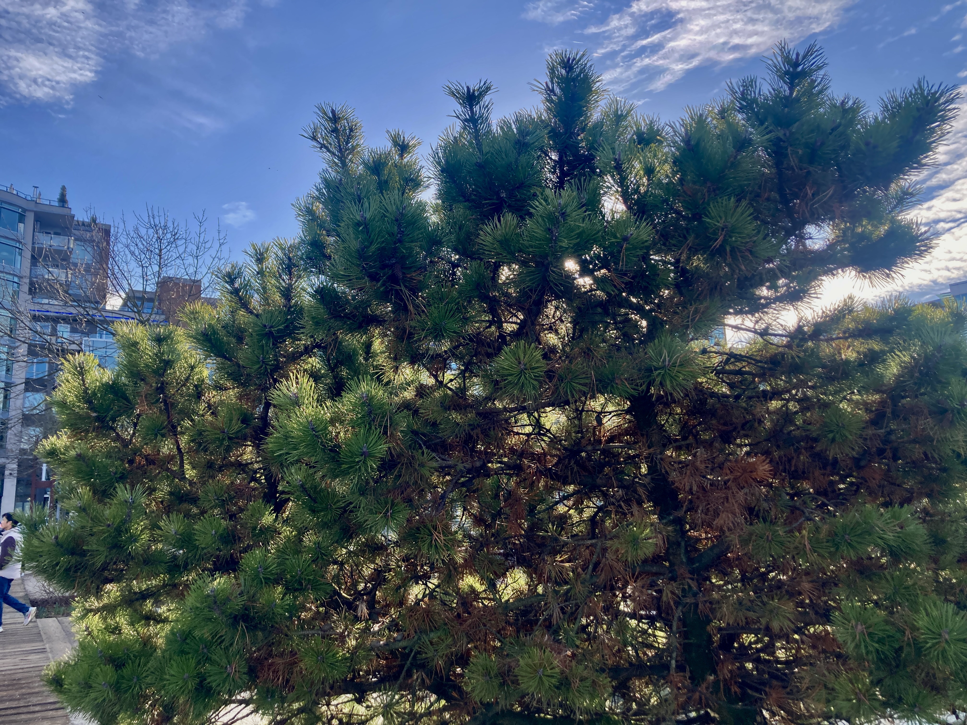 here, the crotch of the tree at the bus stop…