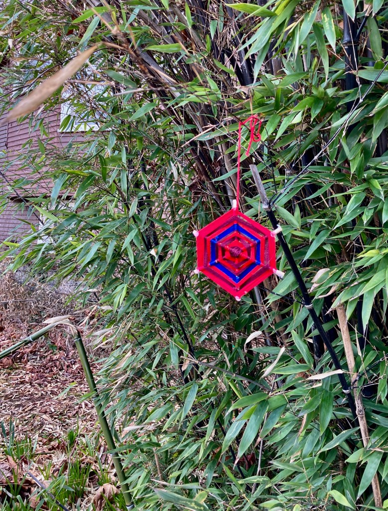 Both the loving beauty of this ornament, tied to a shrub next to the sidewalk …
