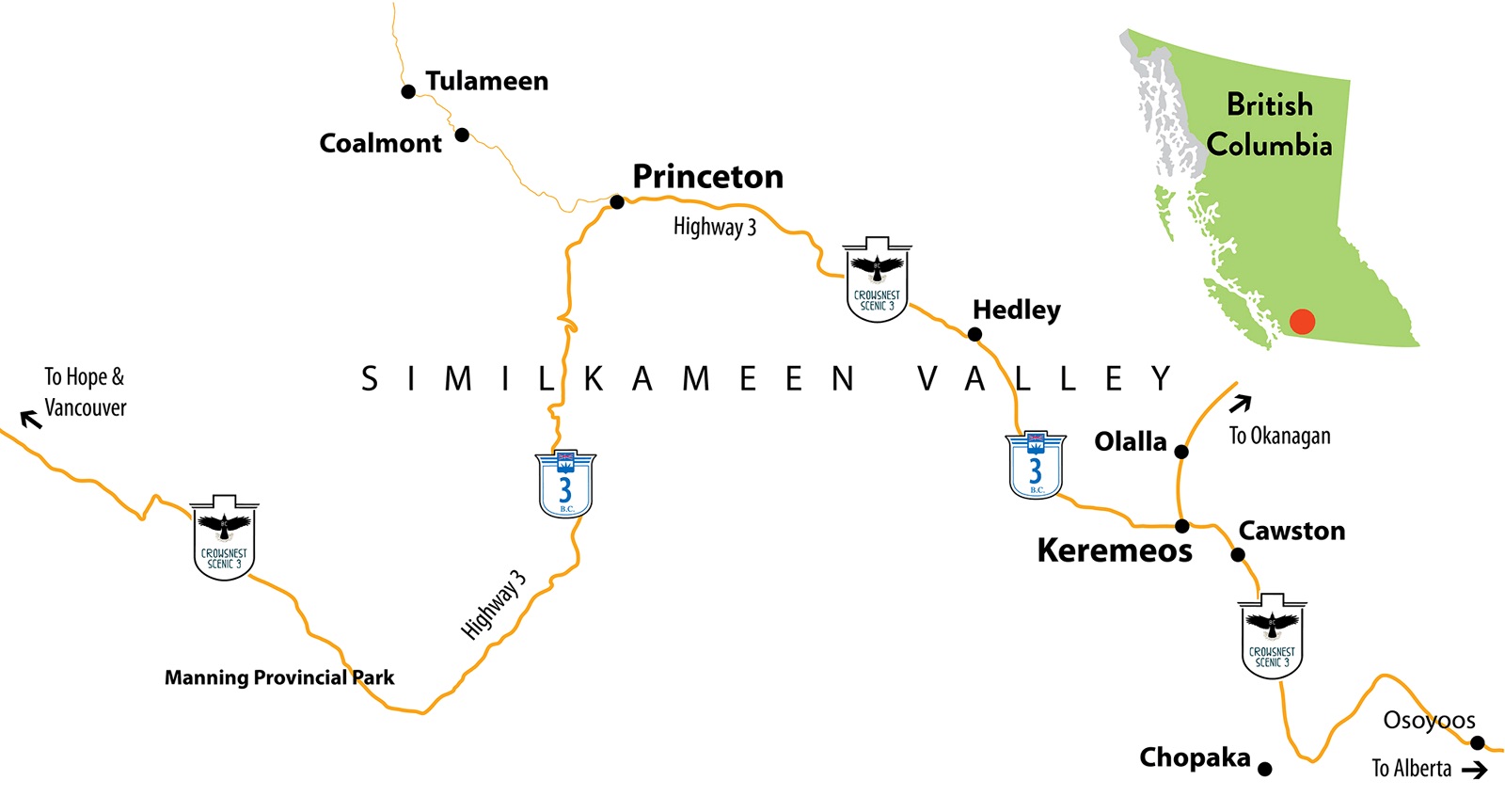 We drive into the B.C. southern interior, past Hope and then turn onto Highway 3, the Crowsnest Highway, working our way into the Similkameen Valley.
