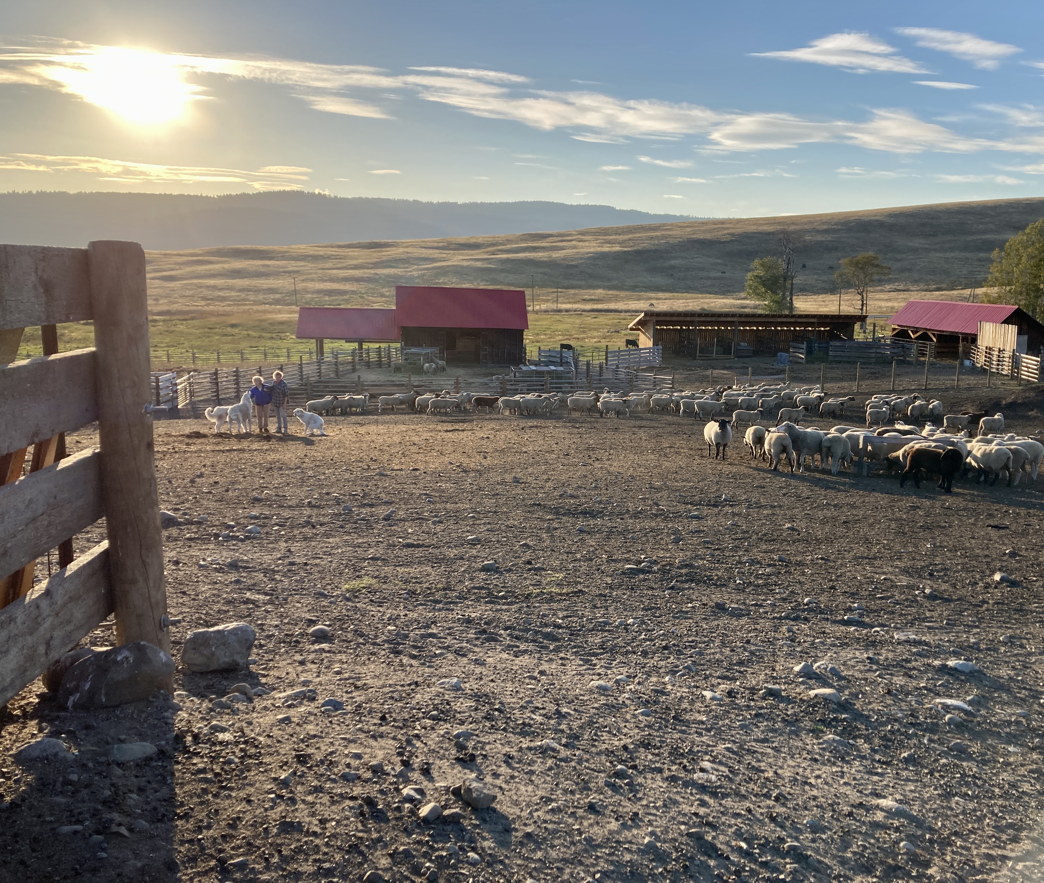 Dogs help work the herd and they protect the herd. Coyotes are an on-going concern.