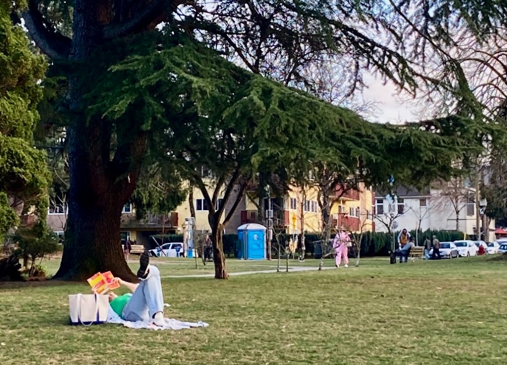 Two, a hardy book-lover is sprawled on the grass with her must-read…