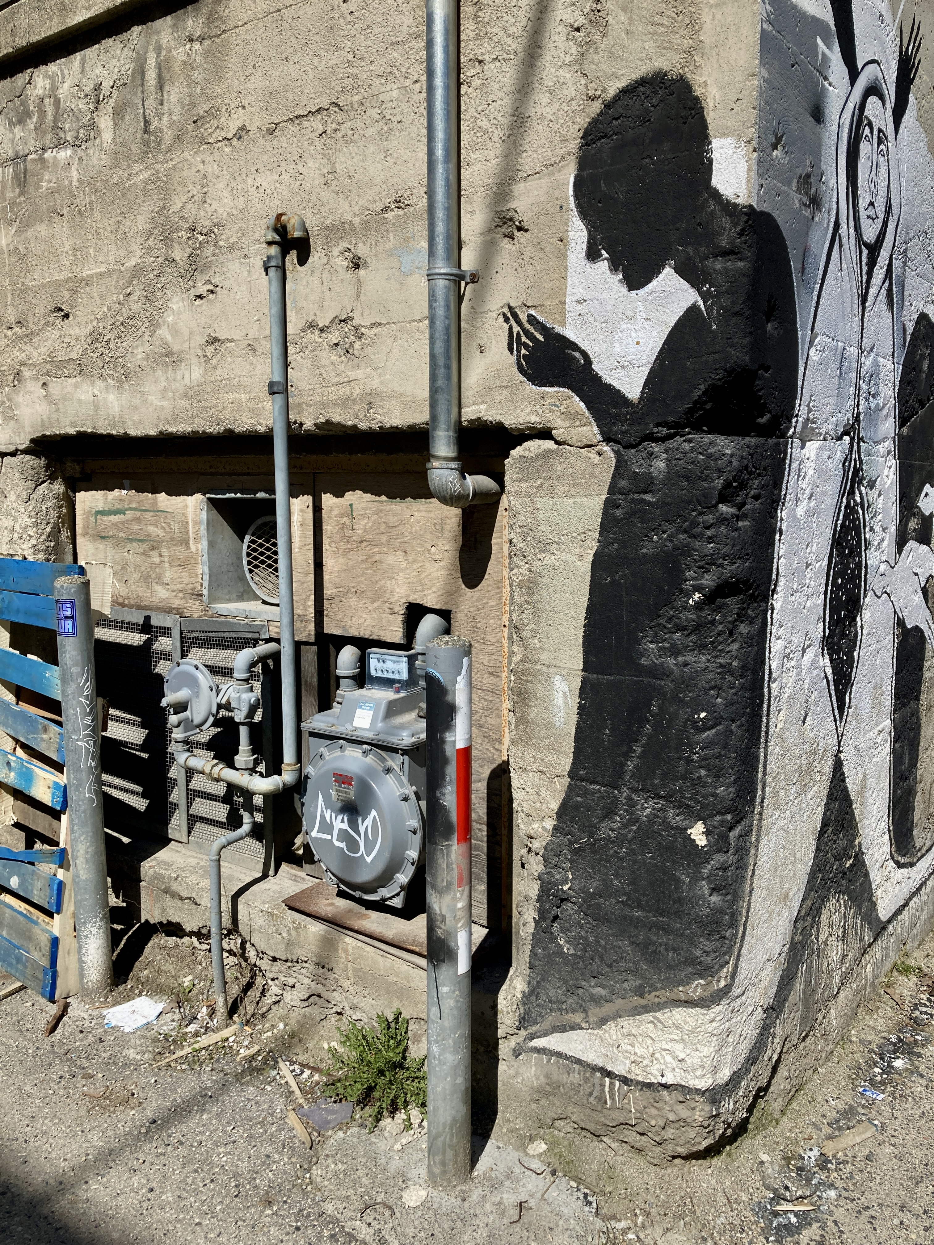 Young Man is eyeing us in a friendly but speculative way. We chin-point to the mural. “Love it!!” we say. He beams. “There are lots of murals in this lane, just keep going. And… thanks. This building, this mural, is mine.” We idly ask his business. “Cannabis,” he says. It’s a factual statement, no particular inflection.