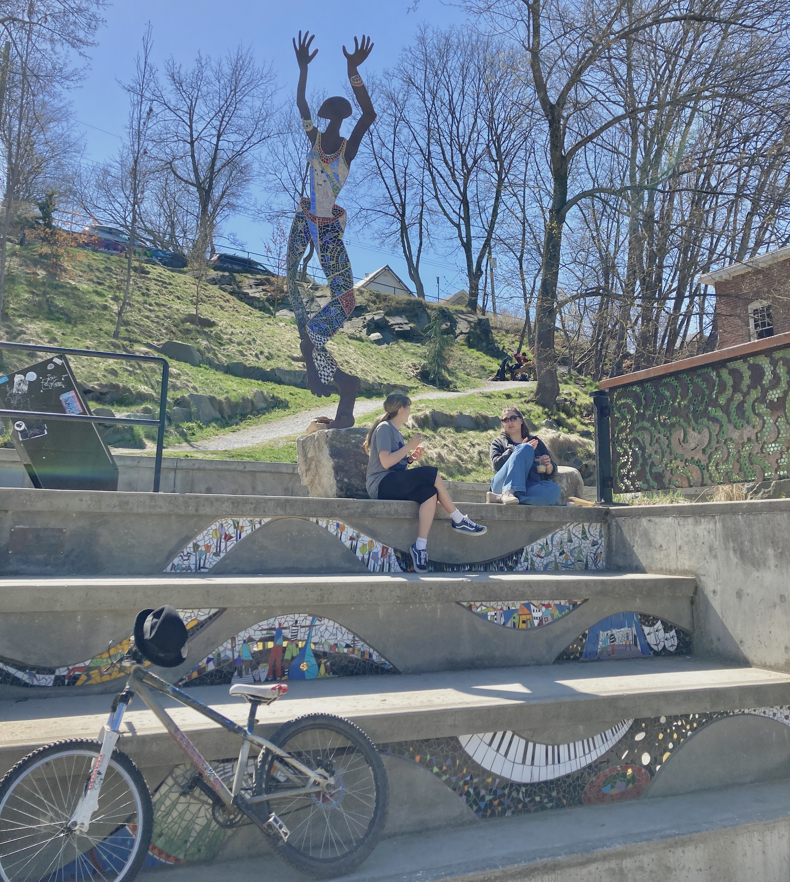 and then, in Hall St. Plaza where Hall butts into the Lane, with Dancing Woman as happy companion to a couple of Coffee-Break Women (who gave permission to be photographed).