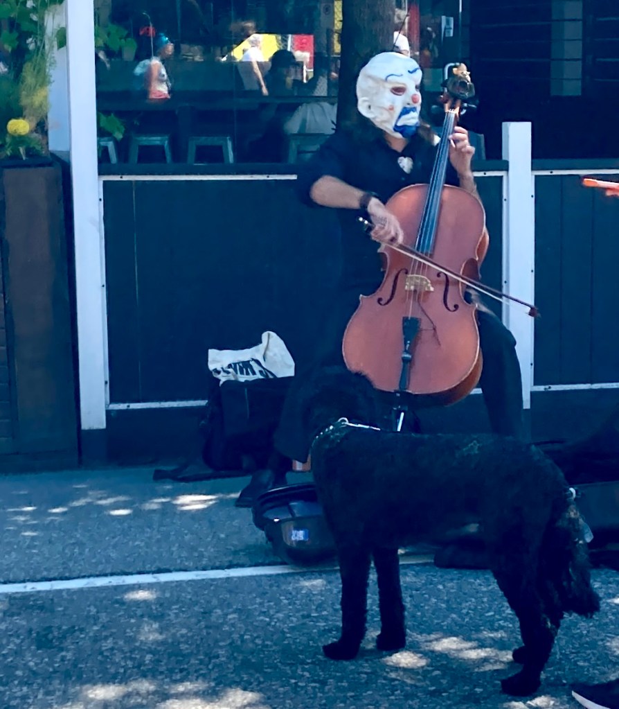 and one of the Bach cello suites, being played by sensitive fingers beneath the Death Mask gaze of the cellist (and to the utter indifference of a passing dog).
