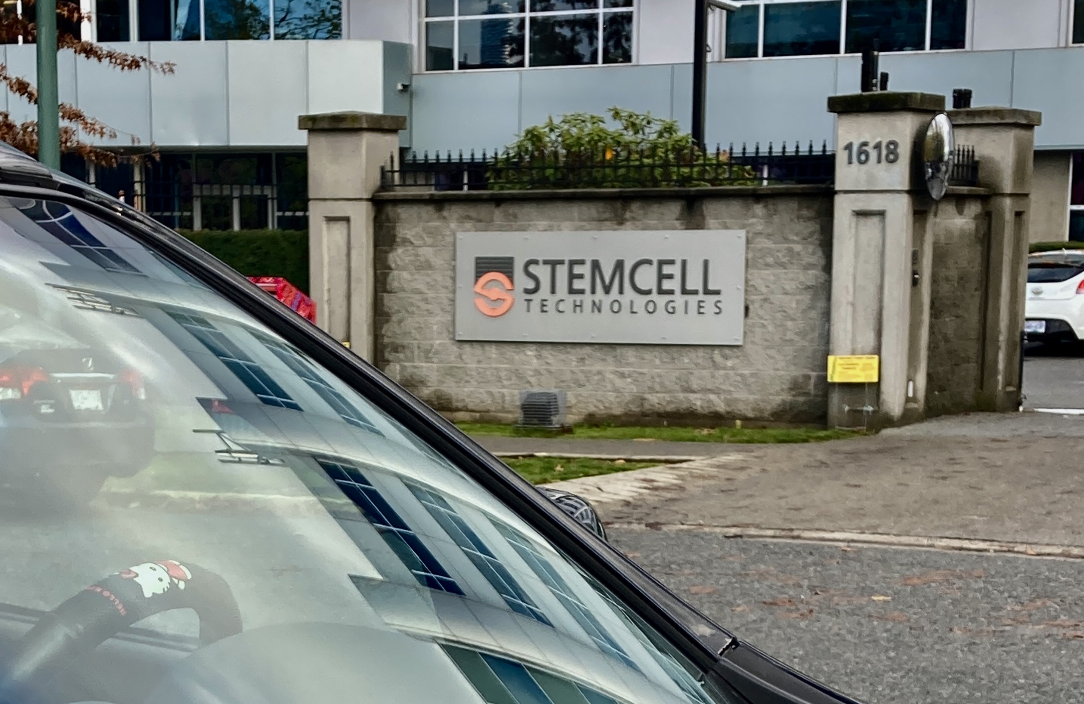 Stemcell Technologies, founded in 1993, has locations around the world but is headquartered here in the Flats. (I confess I am distracted by the sight of the Hello Kitty decal on this car’s steering wheel.)