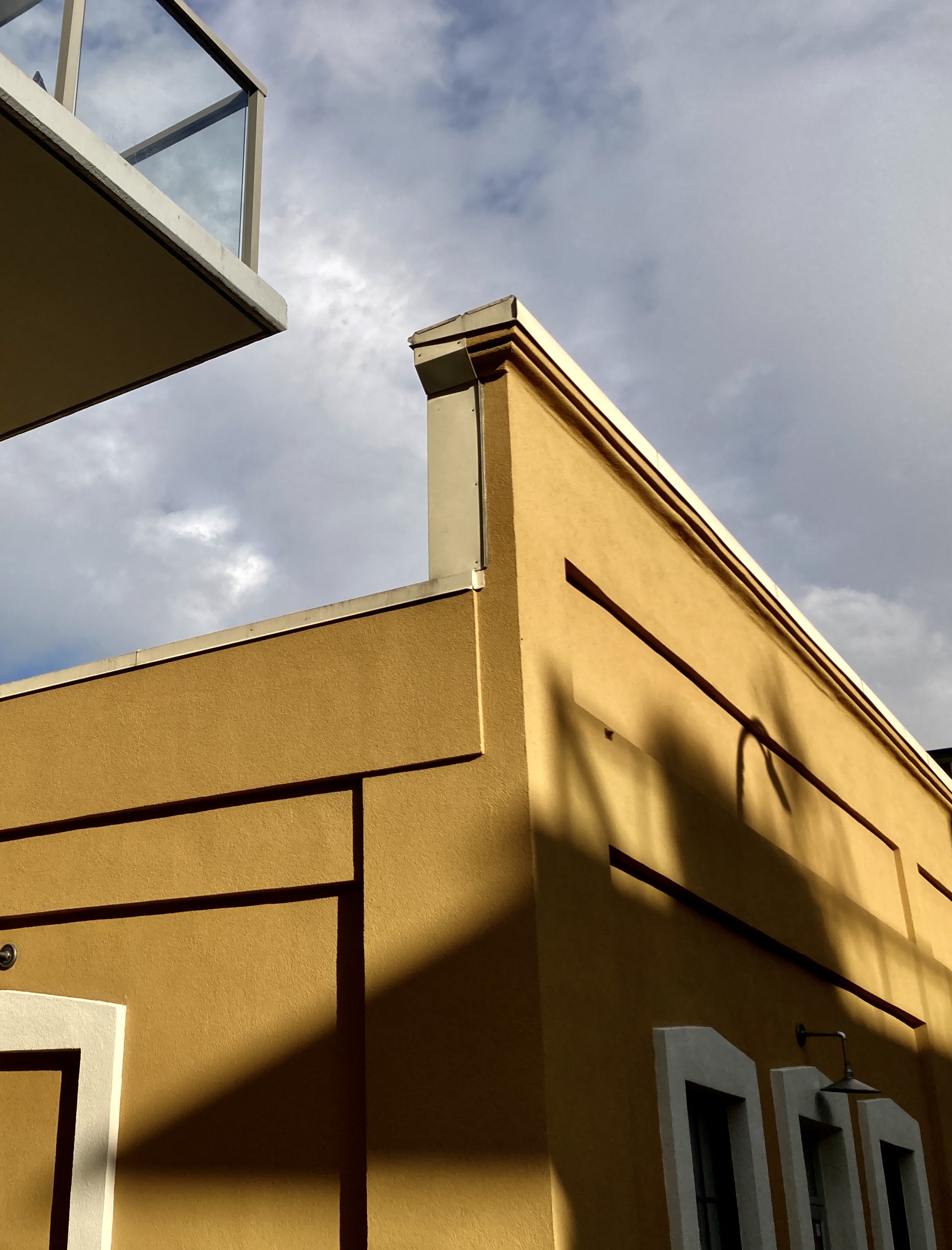 as fickle afternoon sunshine throws shadows on Main Street Brewing Company, at East 7th & Scotia.