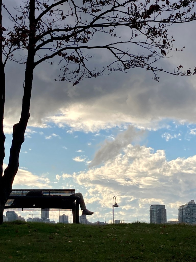 I skirt the bench, nod to the view…