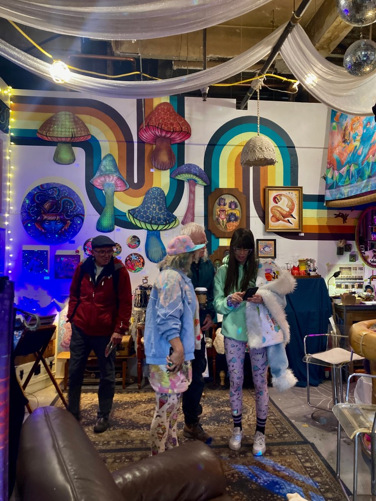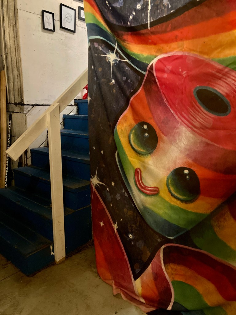 A word about stairs. Stairs literally come with art-crawl territory, since studios are usually located in the higher reaches of their respective buildings. Savvy artists, like these Pot Spot folk, make sure you know which stairs to climb…