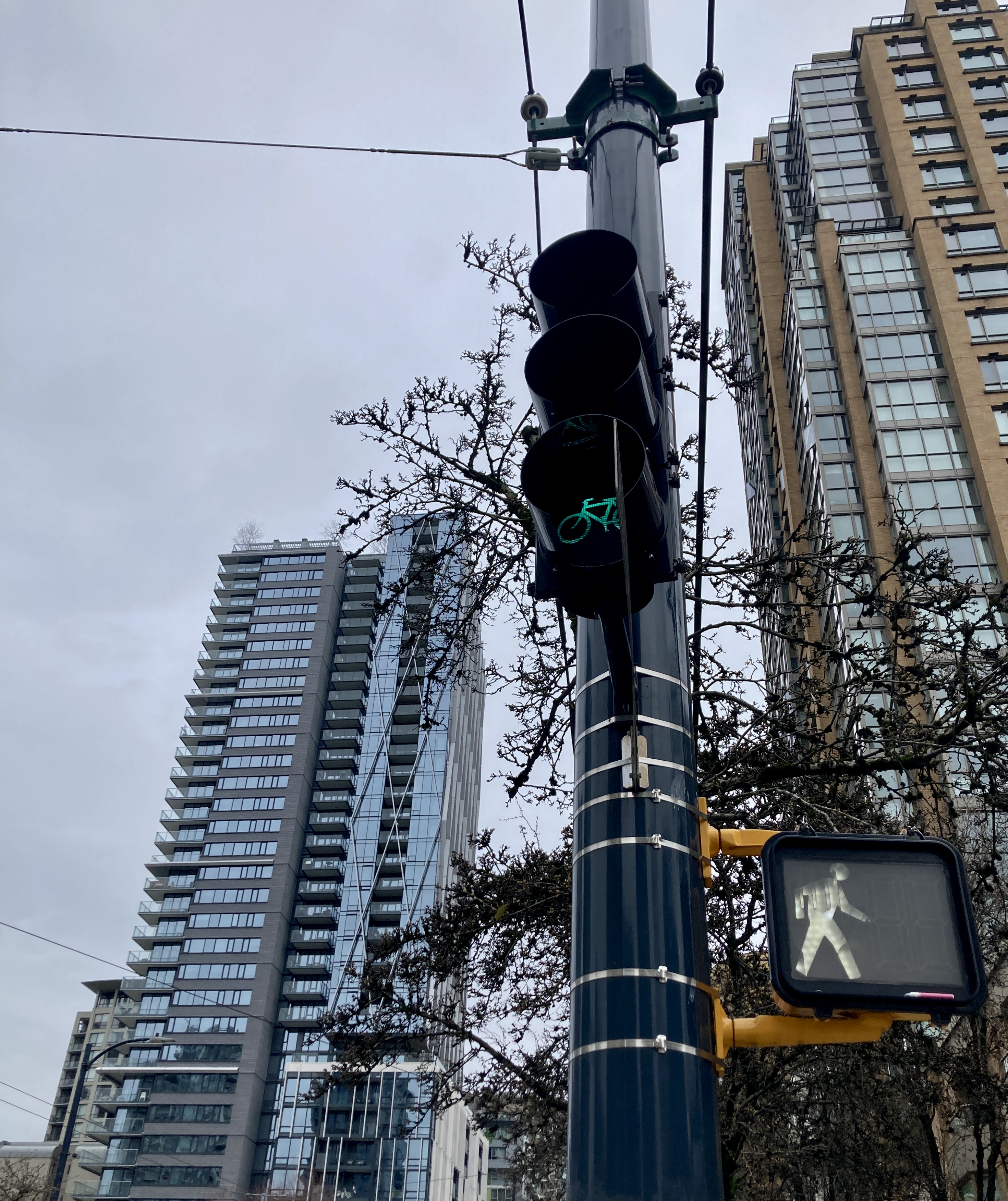 It’s nothing special, it’s just… it’s just very urban. Tram lines overhead; traffic signals to one side; and, framed by both, the residential towers that lie behind Emery Barnes Park and before Helmcken Street.