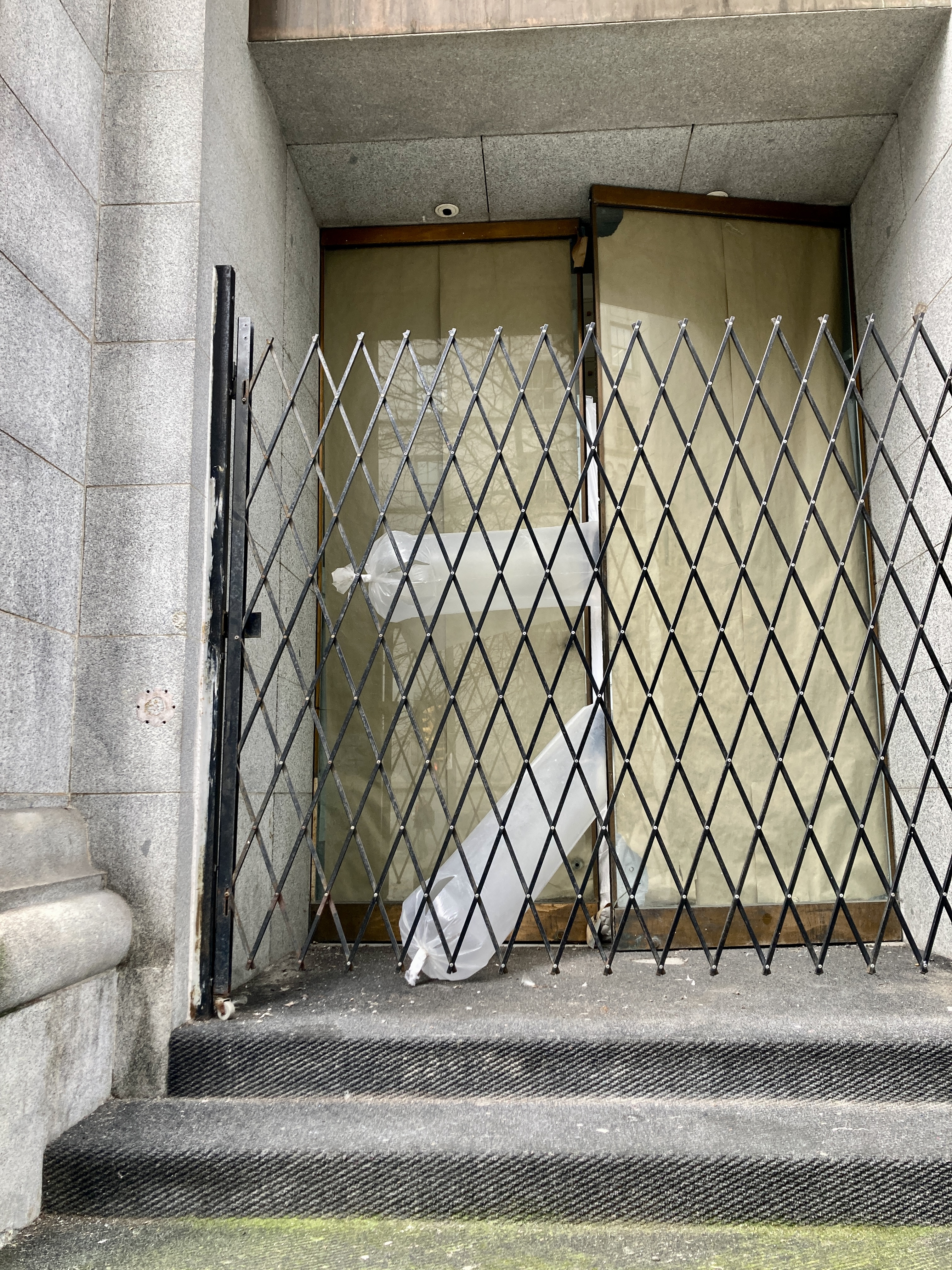 Back up the raised sidewalk I go, now aware that this entire four-building foot print — including the mystery dome — comprises the Sinclair Centre. I knew this, I really did. It just took a while to reconcile my memories of this once-busy office/service/retail complex, with the boarded-up reality of right now.