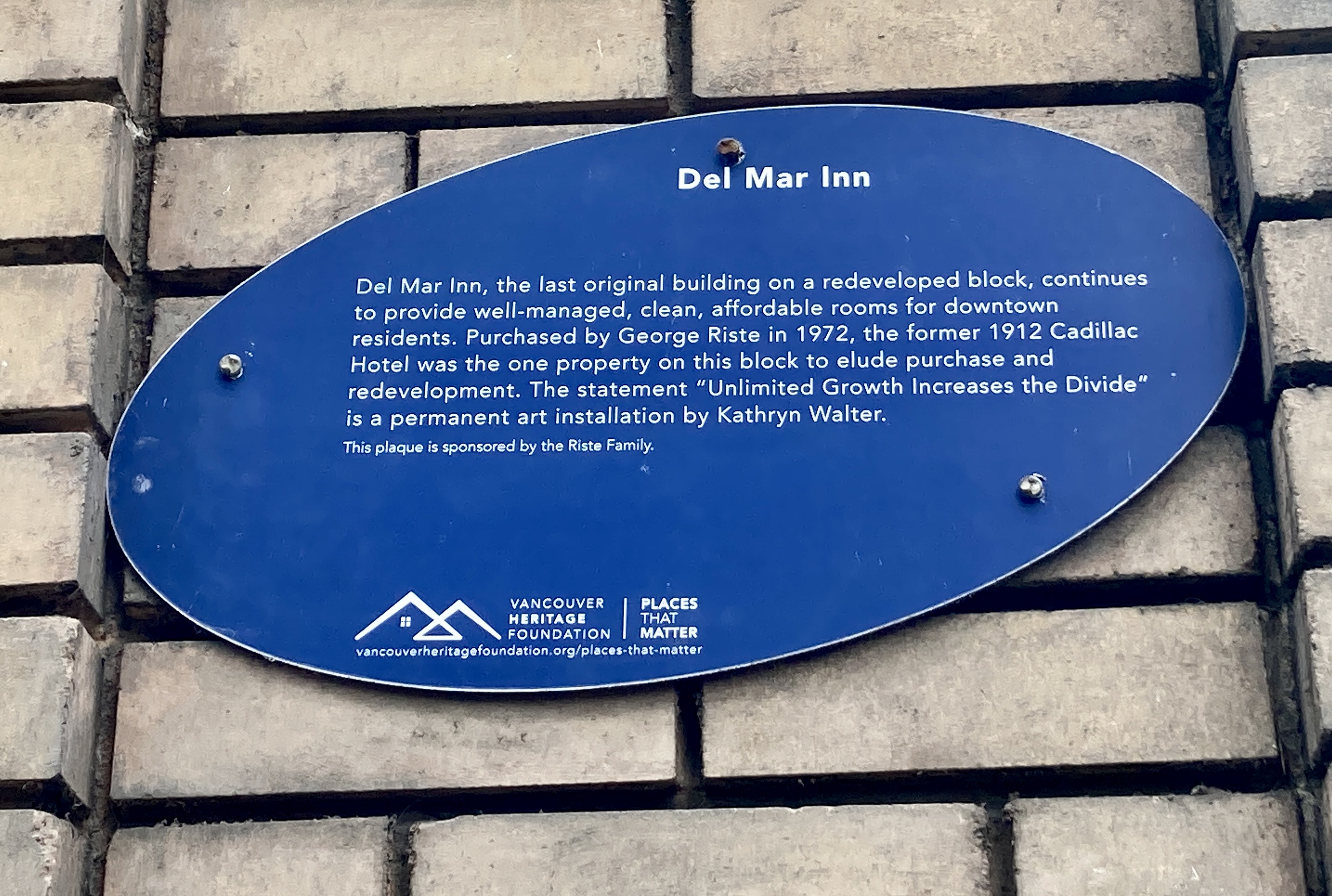 and despite the rah-rah wording of this plaque, is now one of the City’s SROs, a single room occupancy hotel. After my bus ride with Rhinestone Girl et al., after that moment with their worlds, I look at the Del Mar with different eyes.
