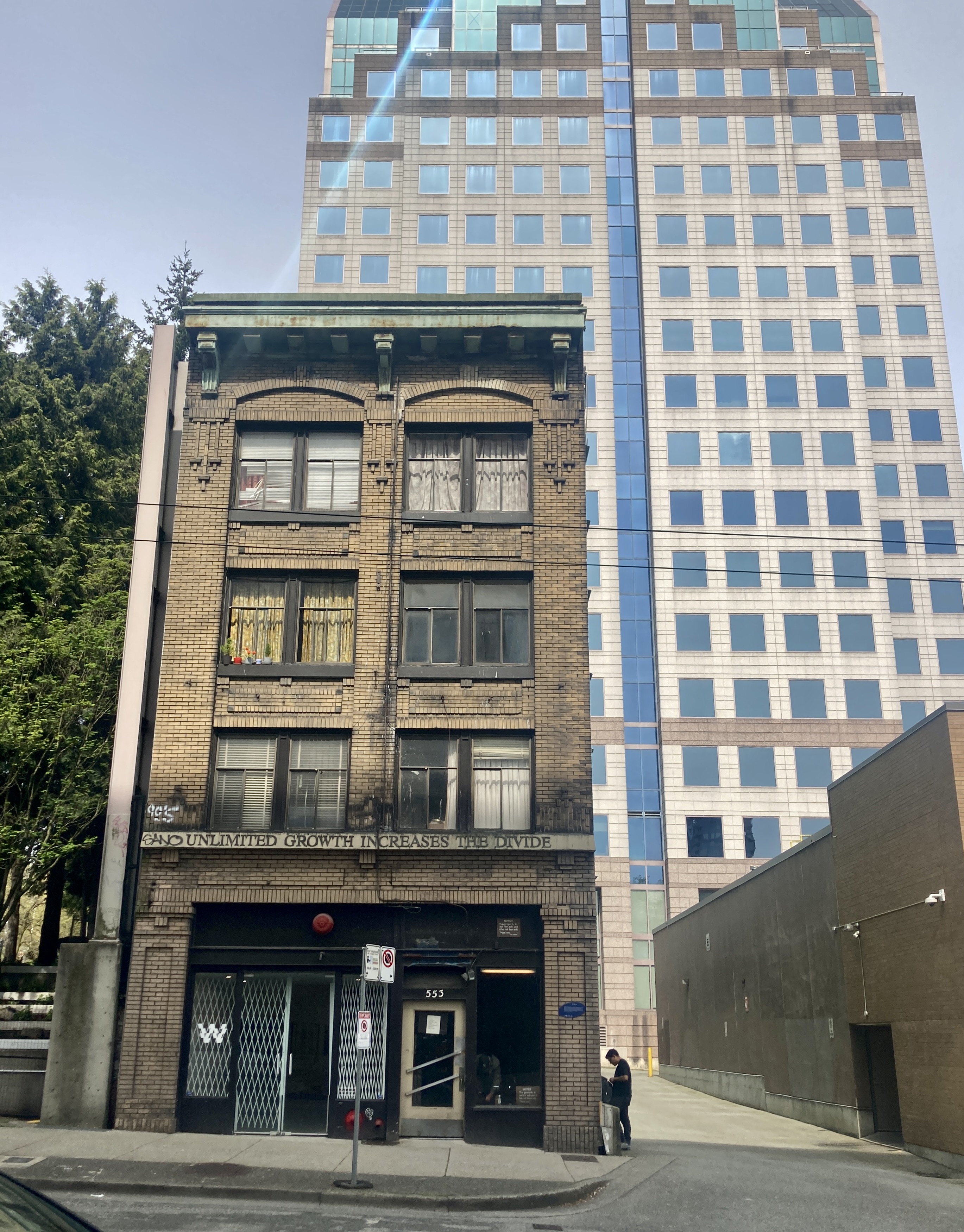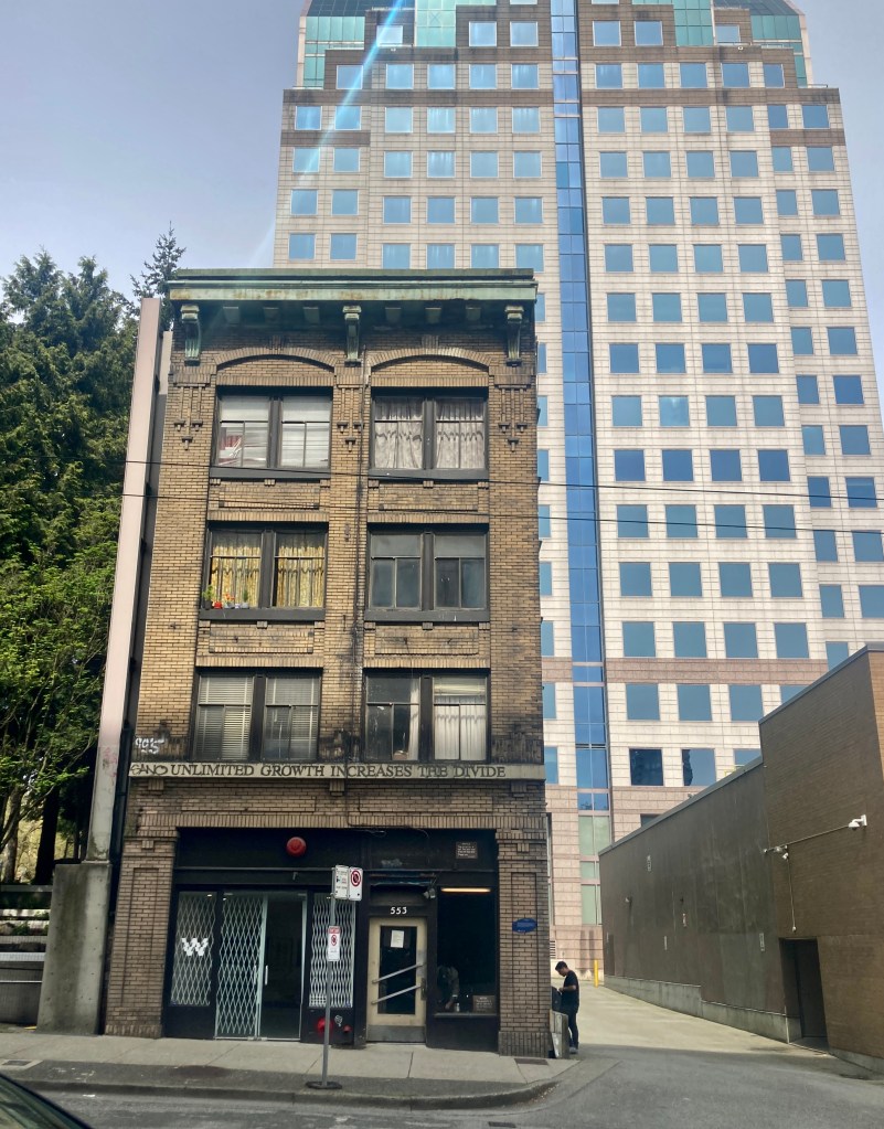 We go our separate ways, me walking up Hamilton Street, my destination being a dance/literary event at the main branch of the Vancouver Public Library. My route takes me past this dingy building.