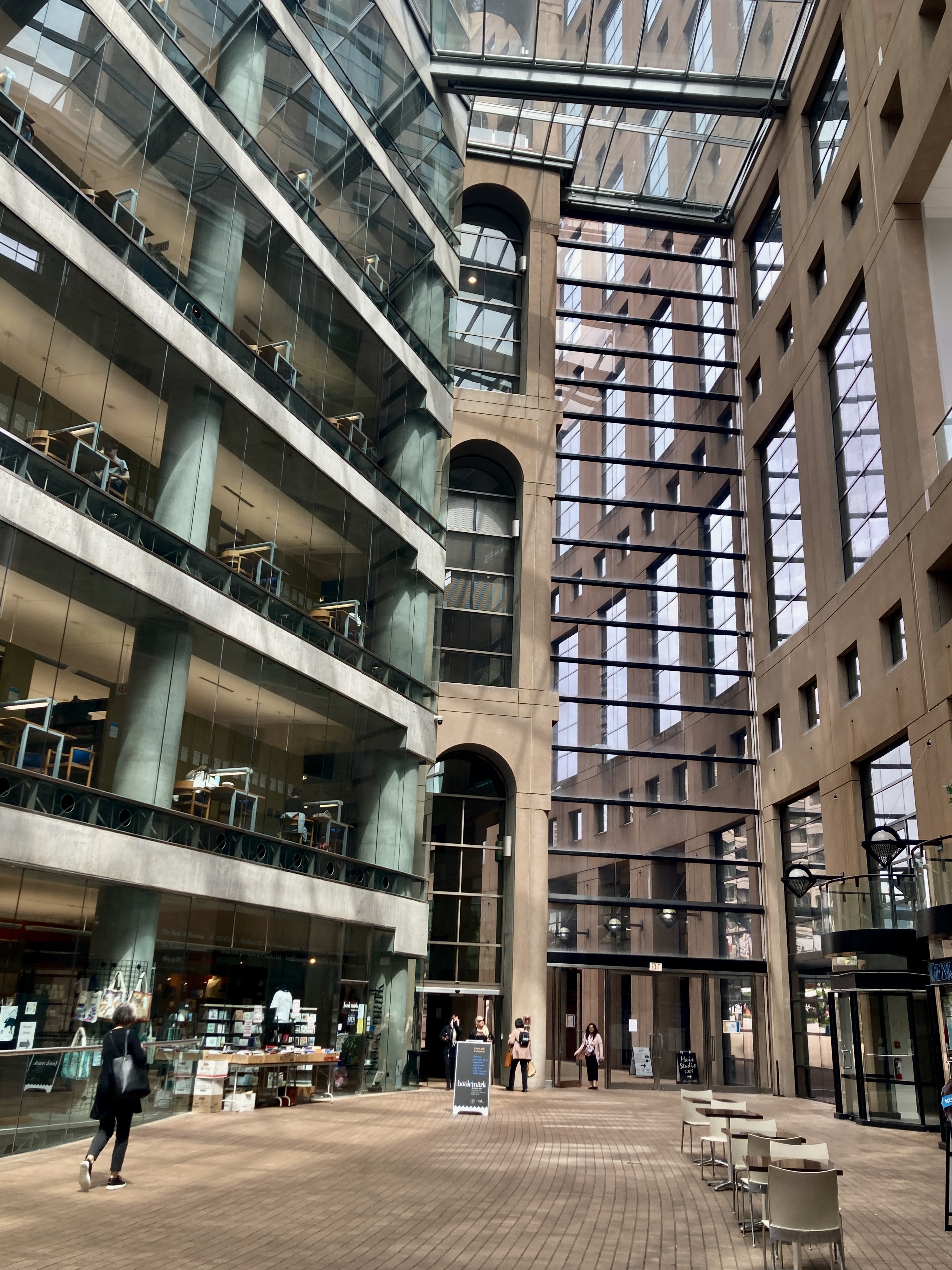 meaning to head straight for the elevator to the 8th floor and my destination event. But of course I get sidetracked, here in the soaring atrium, by the discards bin (between the bottom two pillars, on the left).