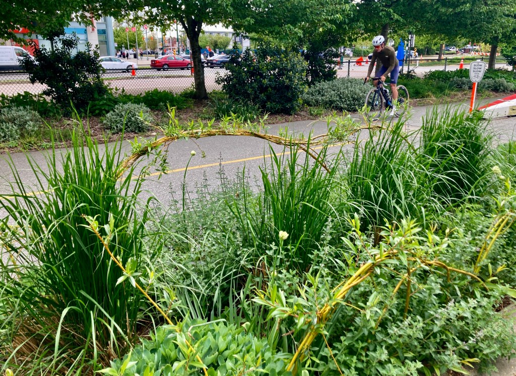 The bike path, this bit behind Science World, is always busy. Grey, green and “green.”