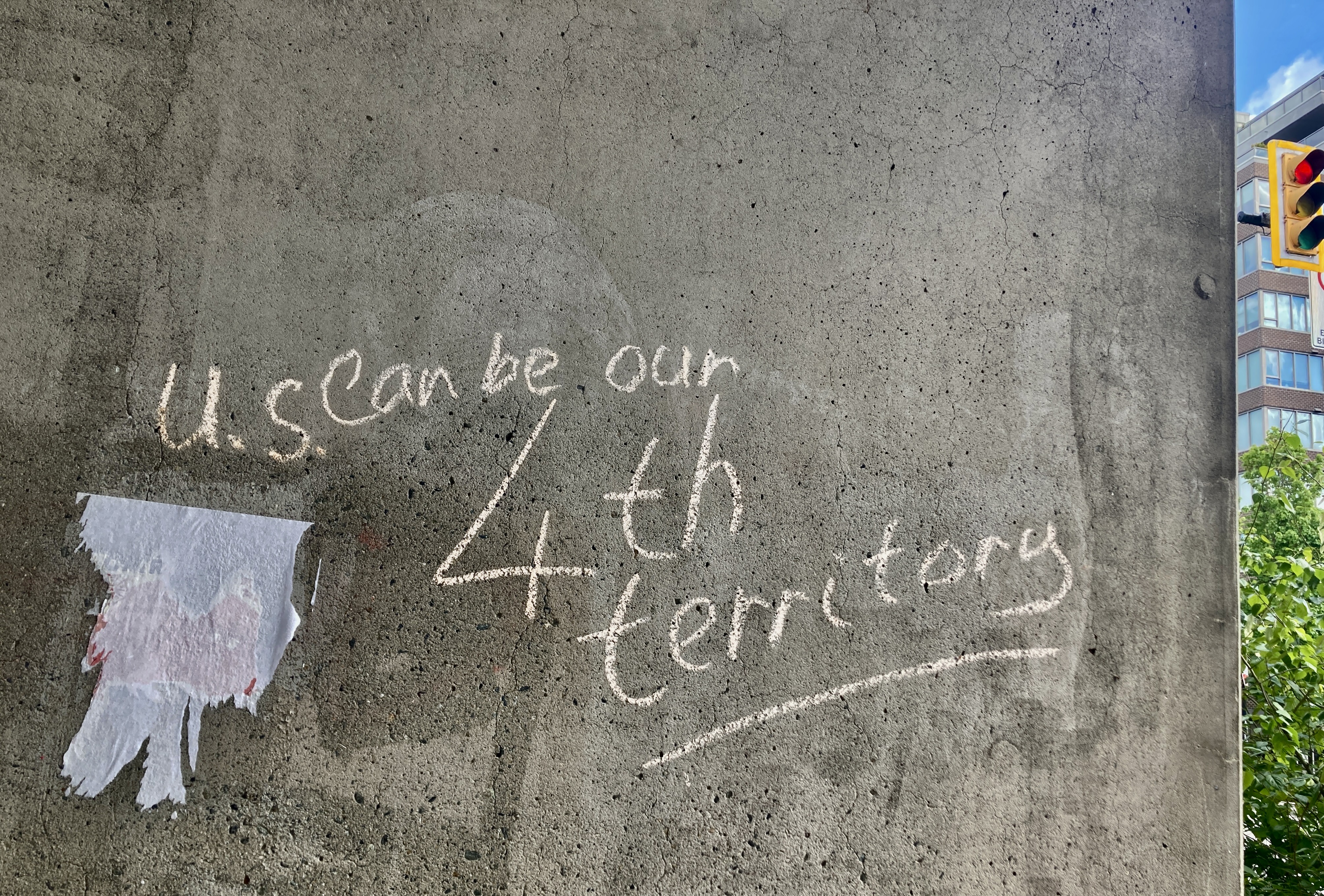 Oh, all right! It does not shape how I see what I see right here, chalked on a south-side rampart for the Cambie Bridge.