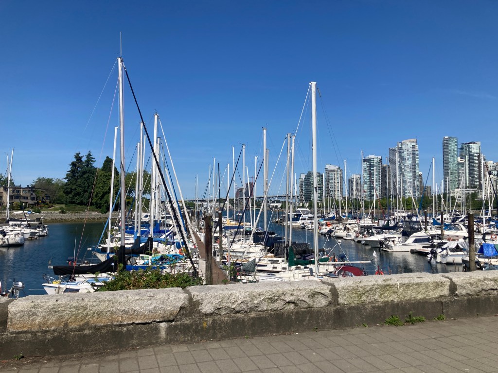 7 June 2025 – Having walked down Heather Street, right to the False Creek Seawall, I am — not surprisingly — at the Heather Civic Marina. Which — also not surprisingly — is full of gently rocking boats.