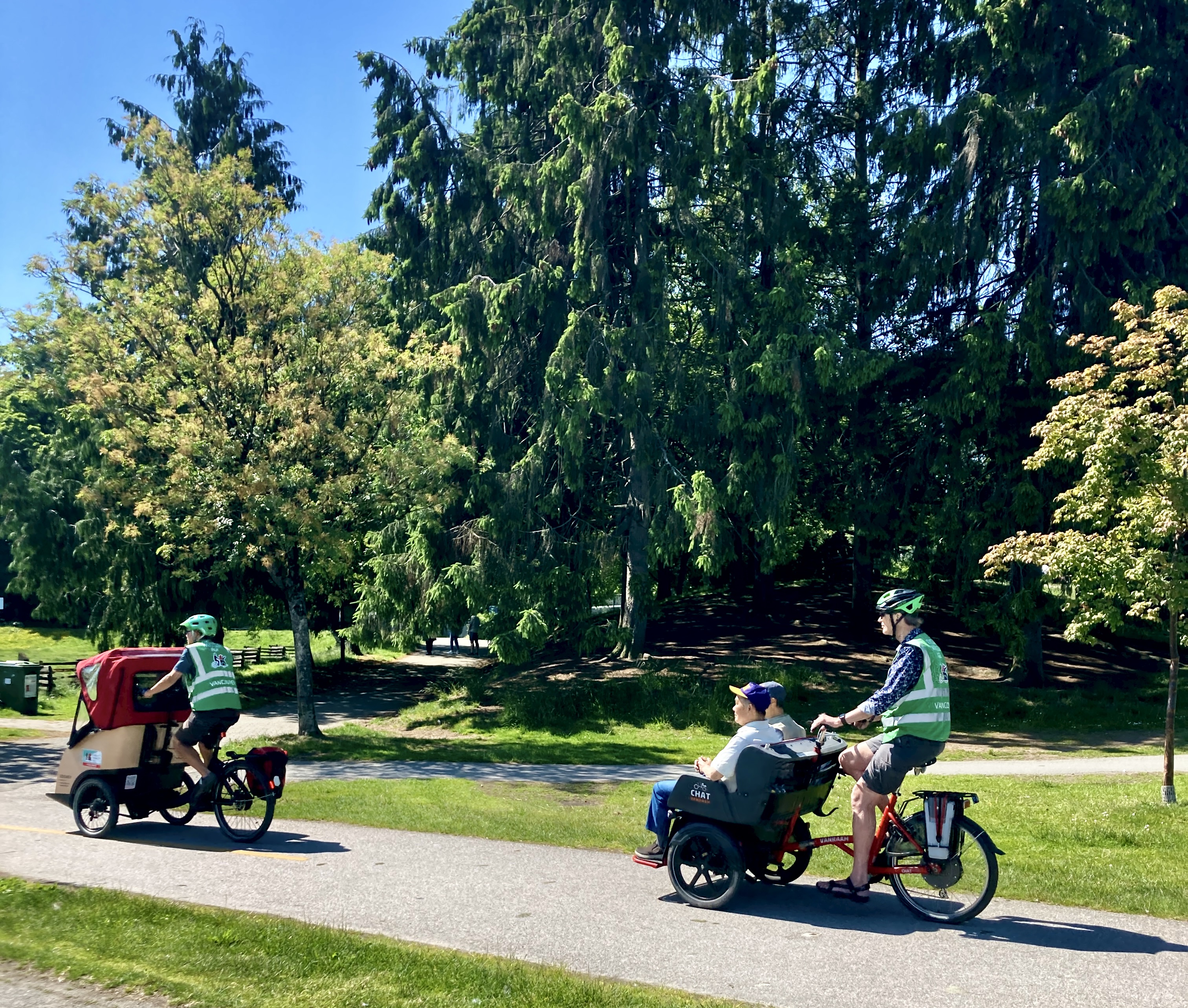 No wonder they approve of the sign — Cycling Without Age is a Canadian charity whose volunteers take local seniors (and their families and friends) out for a spin.