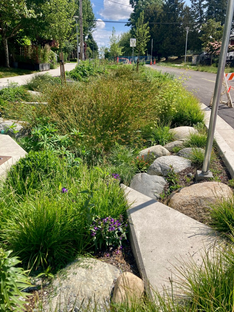 I admire the rain garden that parallels the sidewalk immediately to the south …