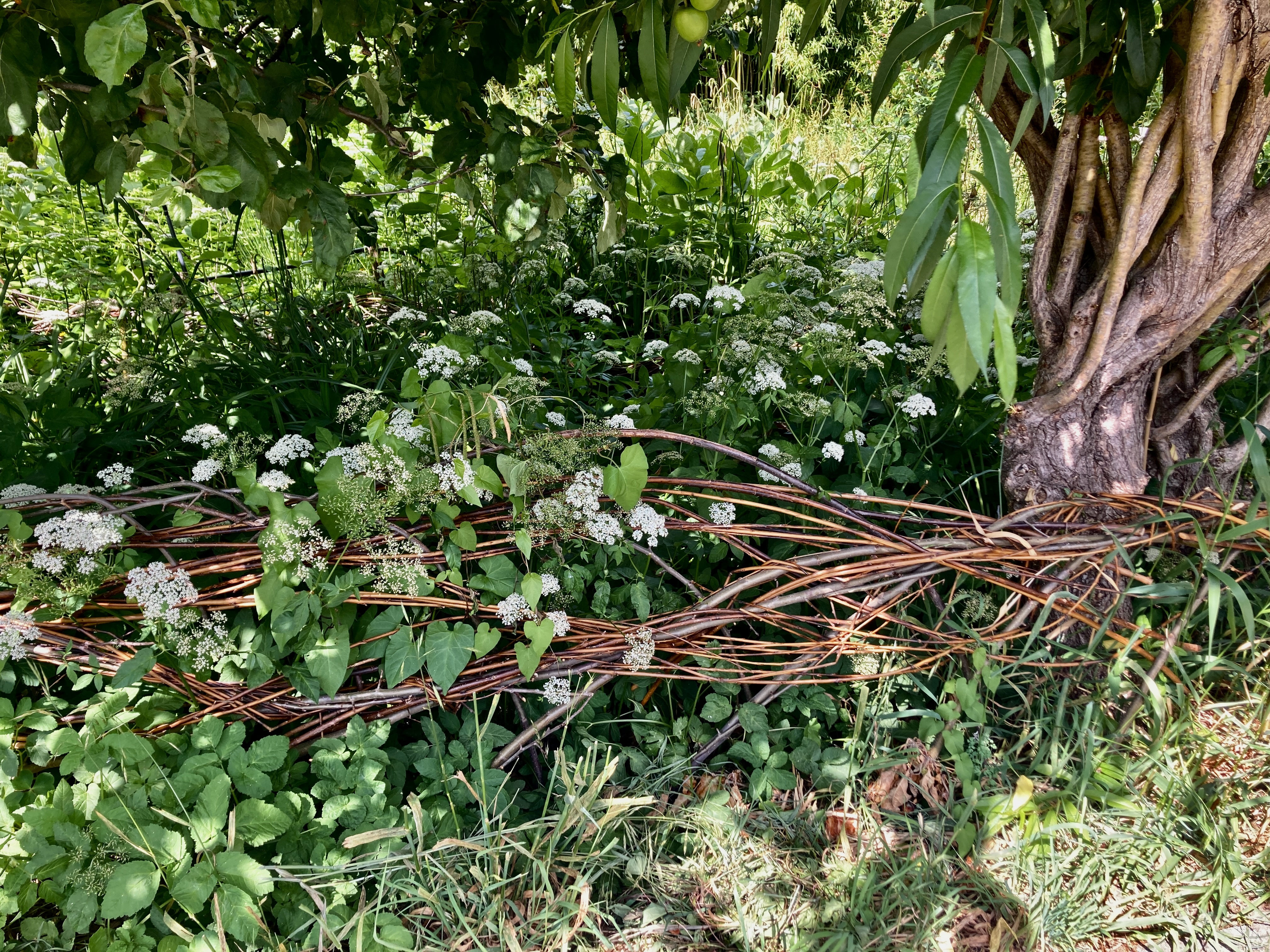 I am heartened, as I approach the edge of this large park, to see fresh new vine fencing woven into the woodlands periphery. (It had become very scruffy.)