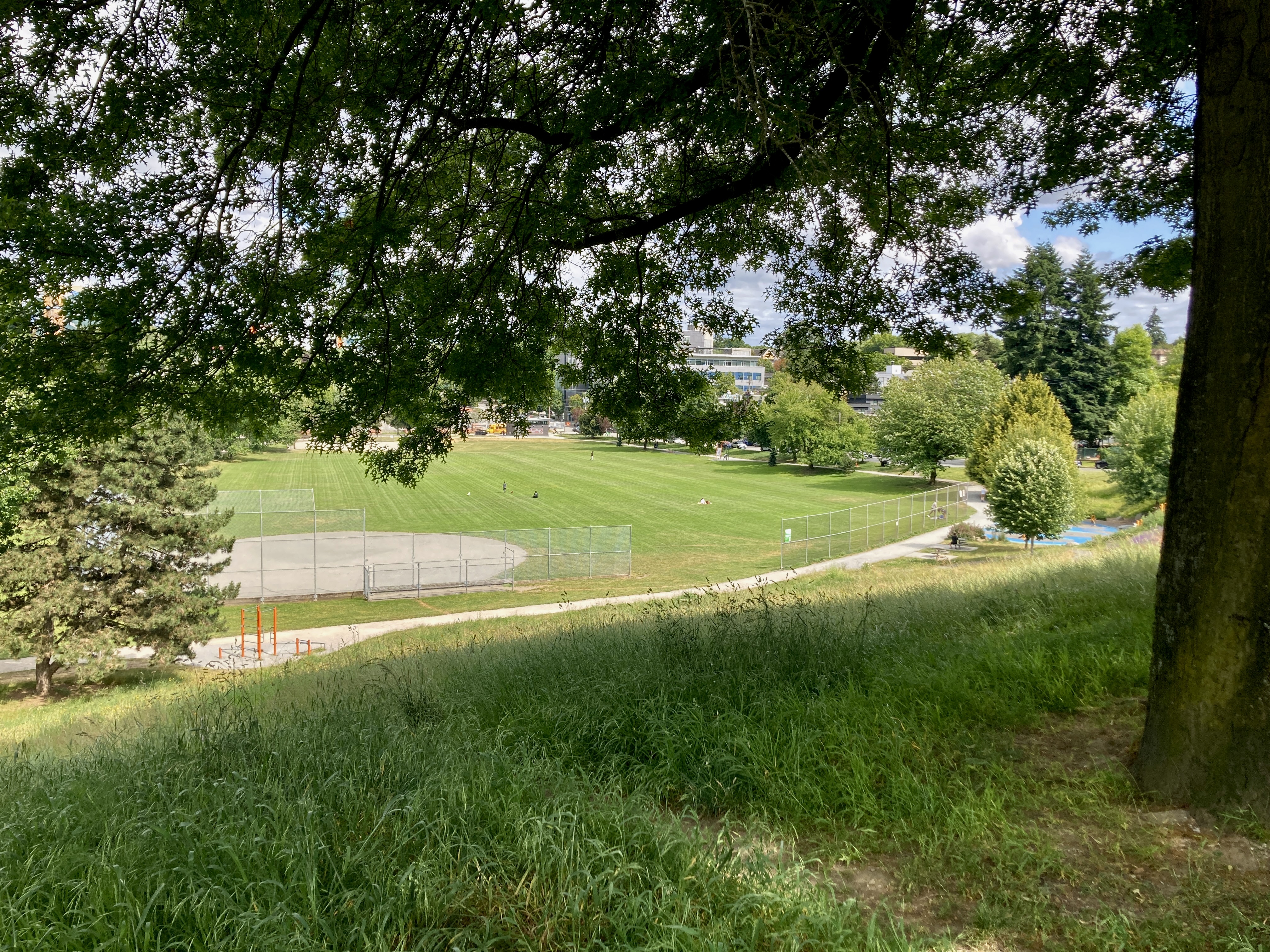 At first, looking down the slope, the basin of the park appears generic and banal. Old fashioned, even.