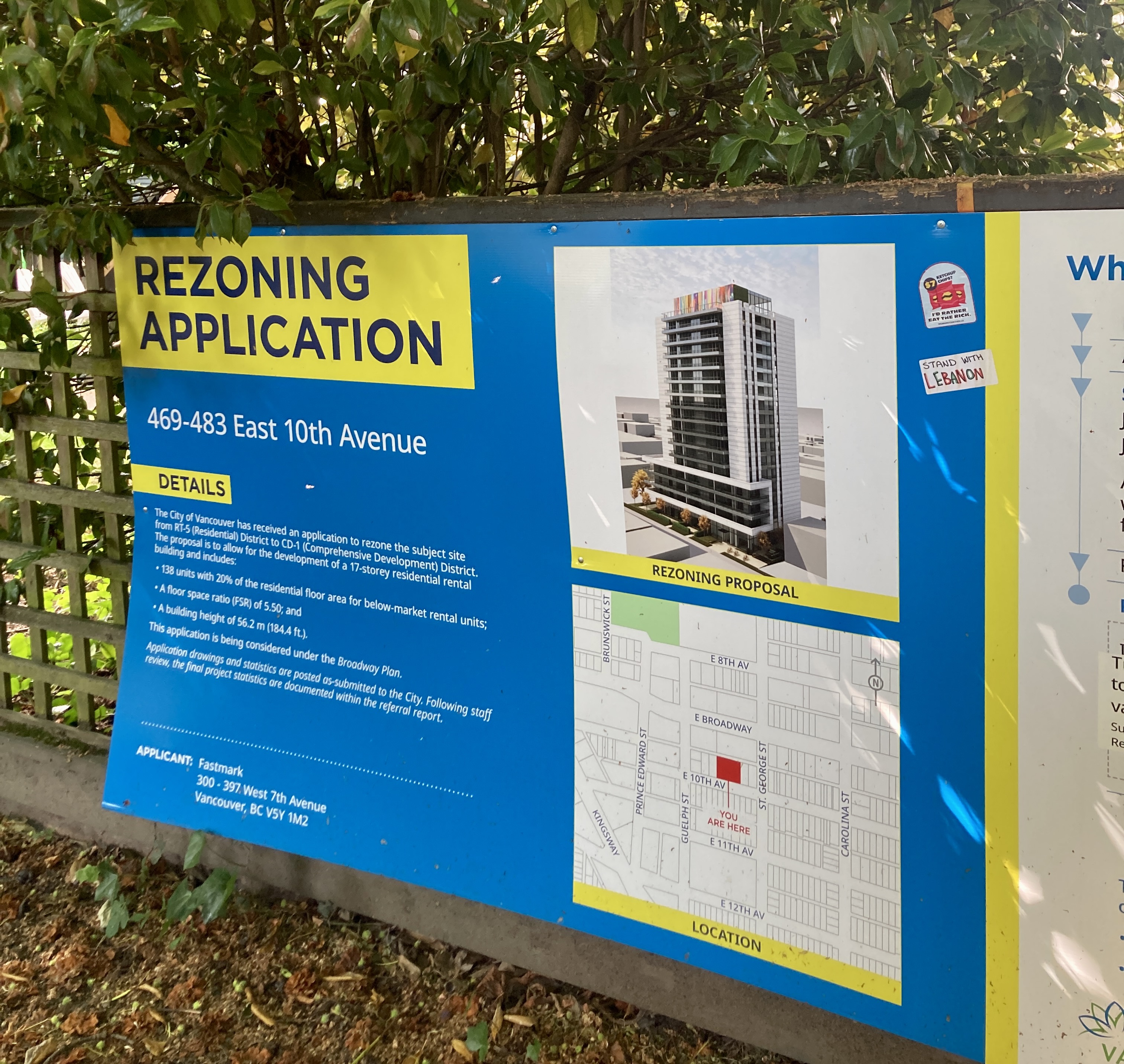 I support the strategy of high-rise density along corridors coupled with much lower-rise and other neighbourhood protections in behind those corridors. (Toronto was applying a version of that strategy when I still lived there, tho’ I’m not sure what’s happening now.) The Broadway Plan promise was to create an array of eco-and other neighbourhood amenities so as to balance corridor density with continued residential livability built on current best urban practices. (Apologies for all those abstract nouns!) In reality, we see density proposals unchecked by any concern for amenities, scale or other eco- and human safeguards. This pattern of proposals is unnervingly a pattern of neighbourhood-busting, rather than of neighbourhood enhancement. There will be greater density, including significantly more housing, but largely still housing for the well-off and unlikely to help with our social ills.