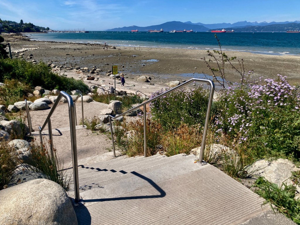and this time my gaze takes in the green sweep of Stanley Park, the final knob of the City of Vancouver this side of the North Shore, and, to its right, the towers of the City’s downtown cluster. I’ll be walking east, from here to Kitsilano Beach Park.