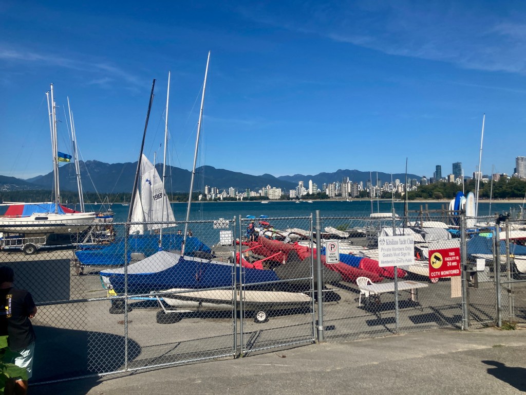I’ve reached the Kitsilano Yacht Club, just this side of Kitsilano Beach Park. My choice now is to swim around, or scramble up.