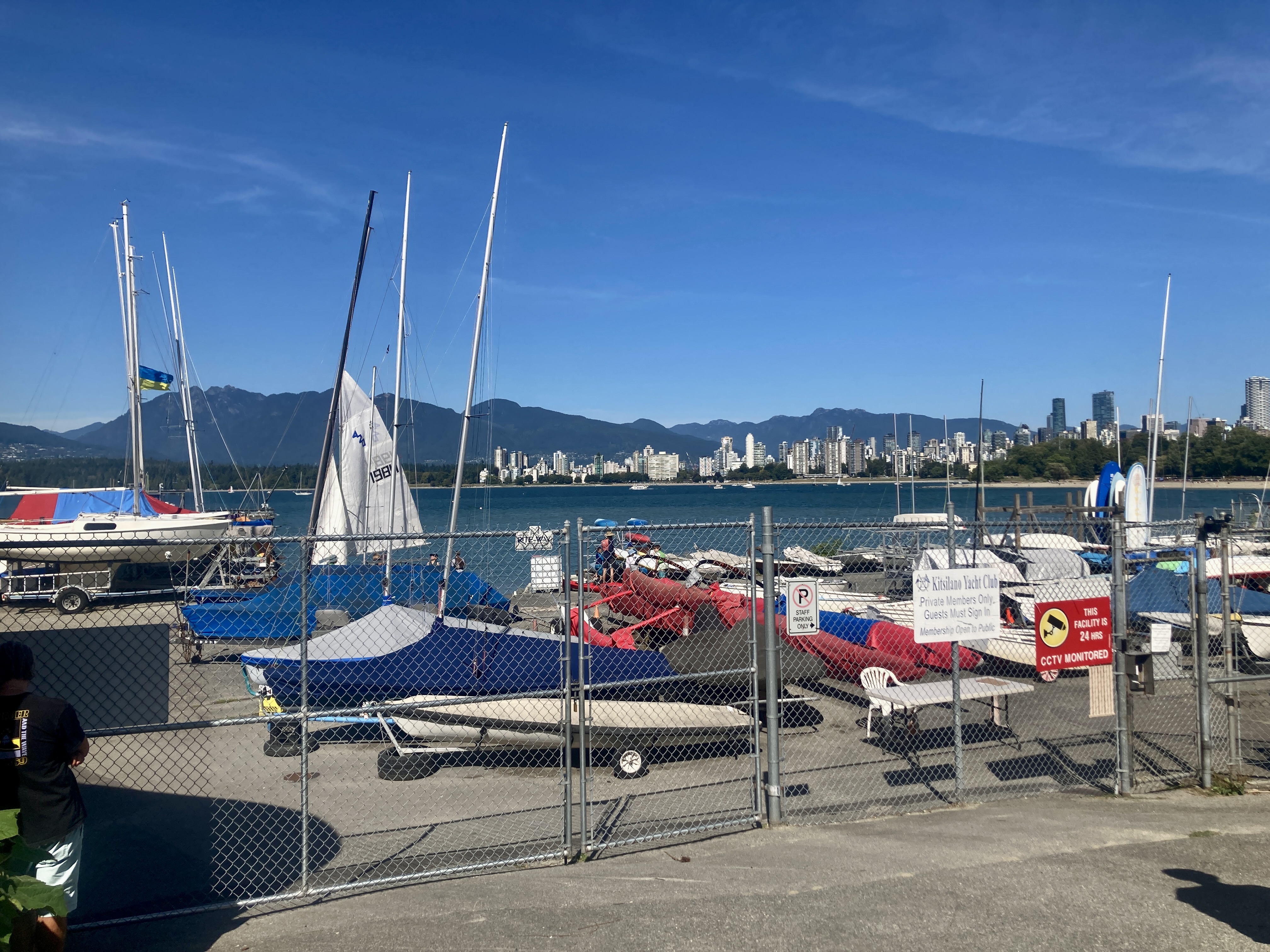 I’ve reached the Kitsilano Yacht Club, just this side of Kitsilano Beach Park. My choice now is to swim around, or scramble up.