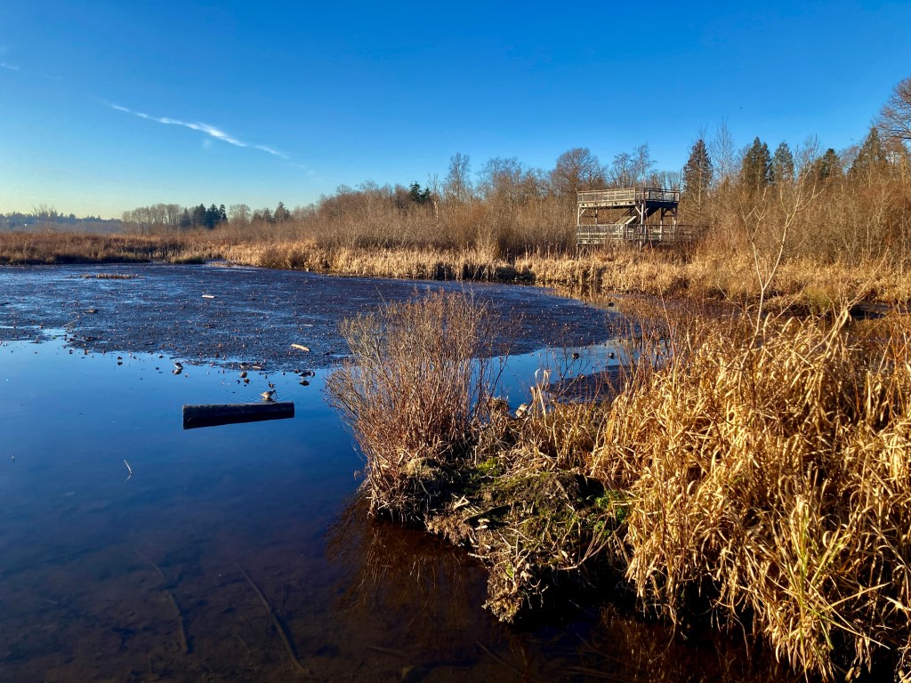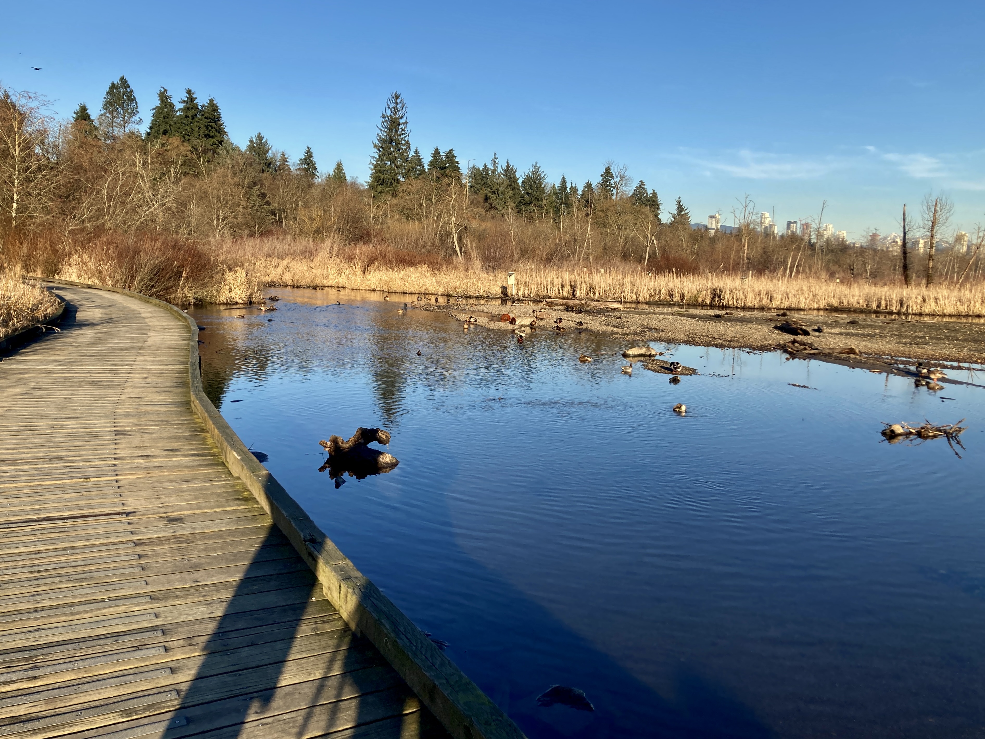We’re off to Burnaby Lake Regional Park. The park surrounds a large glacial lake to the east of Vancouver, and lies within its own dense municipality. Yet it is also home to wildlife (especially birds) and rich with trails for human visitors (walk, cycle, ride a horse, as you wish).