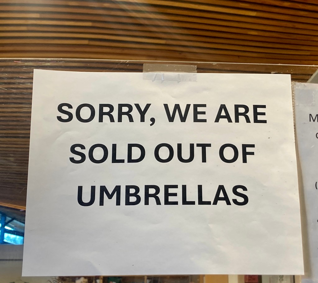 our shops run out of umbrellas.