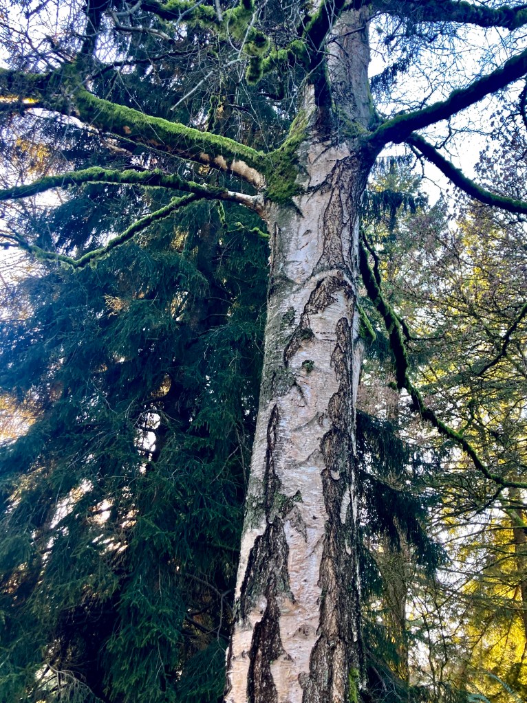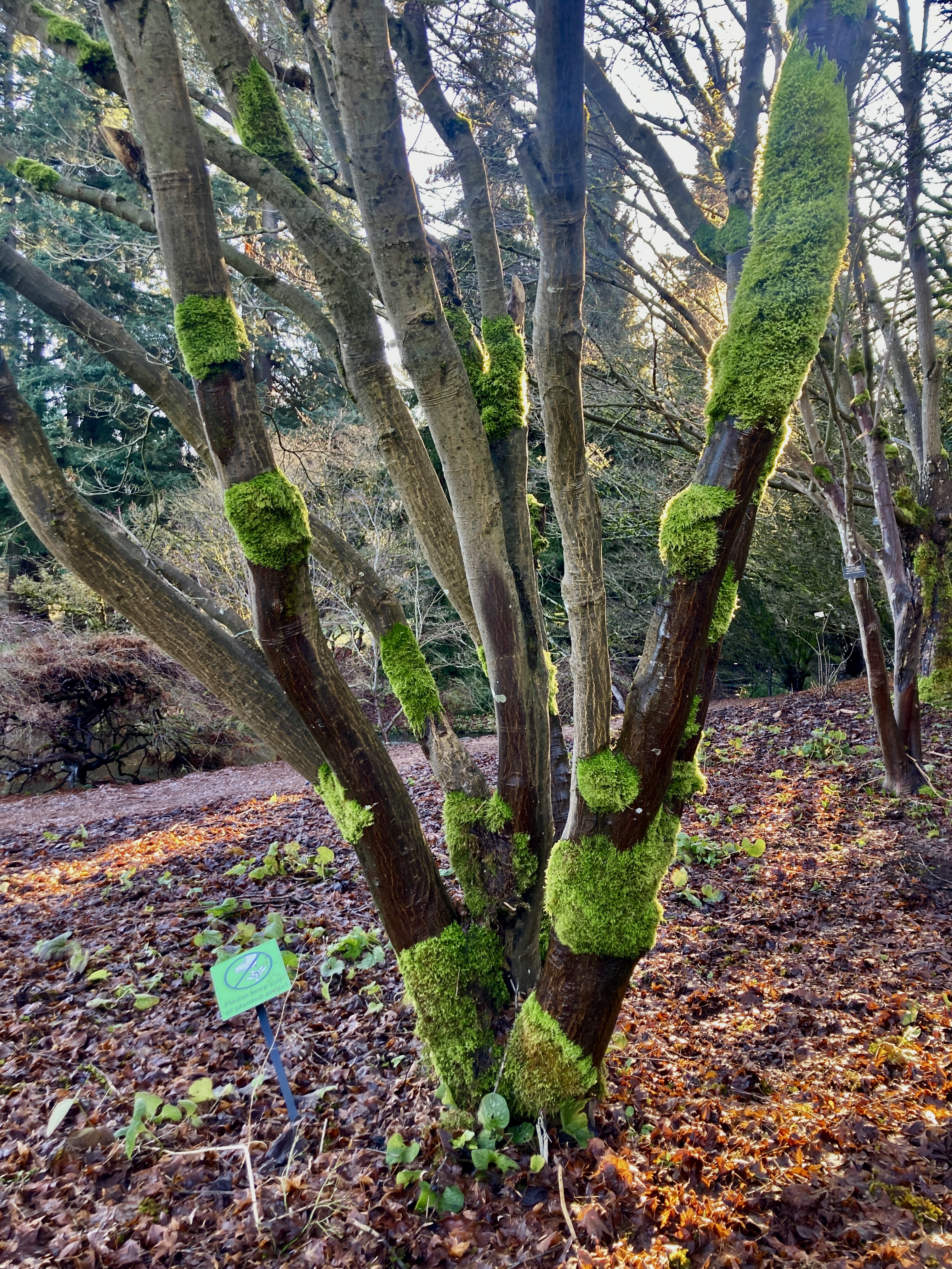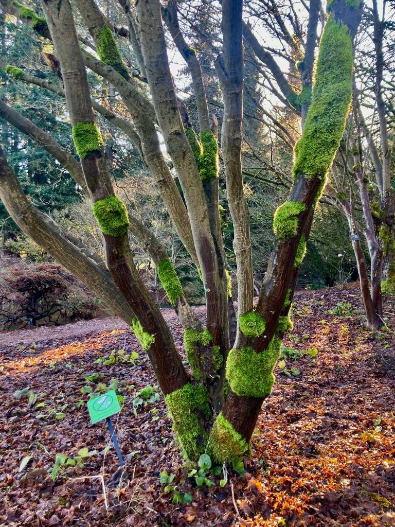 Tree trunks and branches flourish their winter coats of moss.