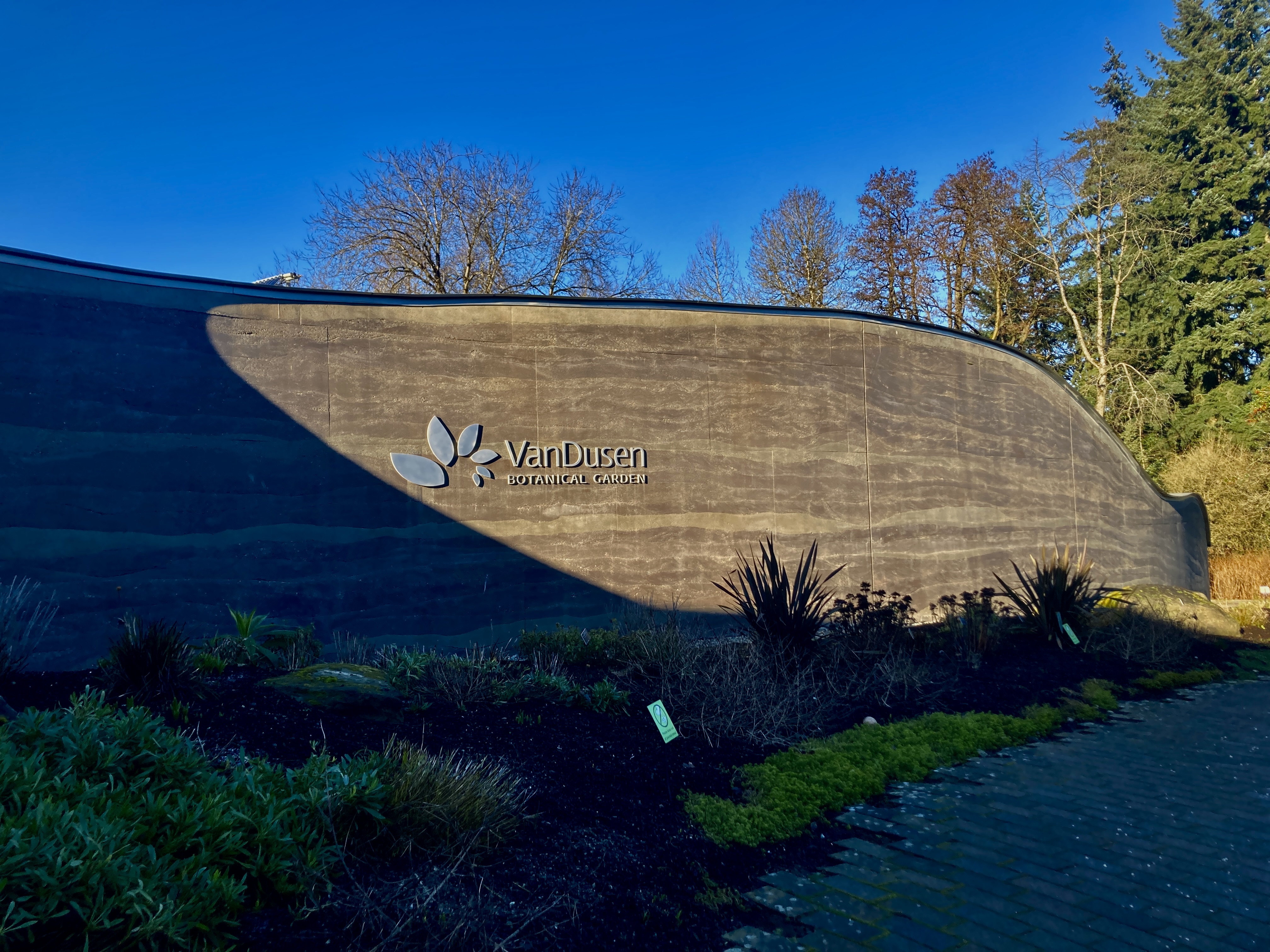 Then we’re off, out past the Garden’s rammed earth sirewall, handsome in any season…