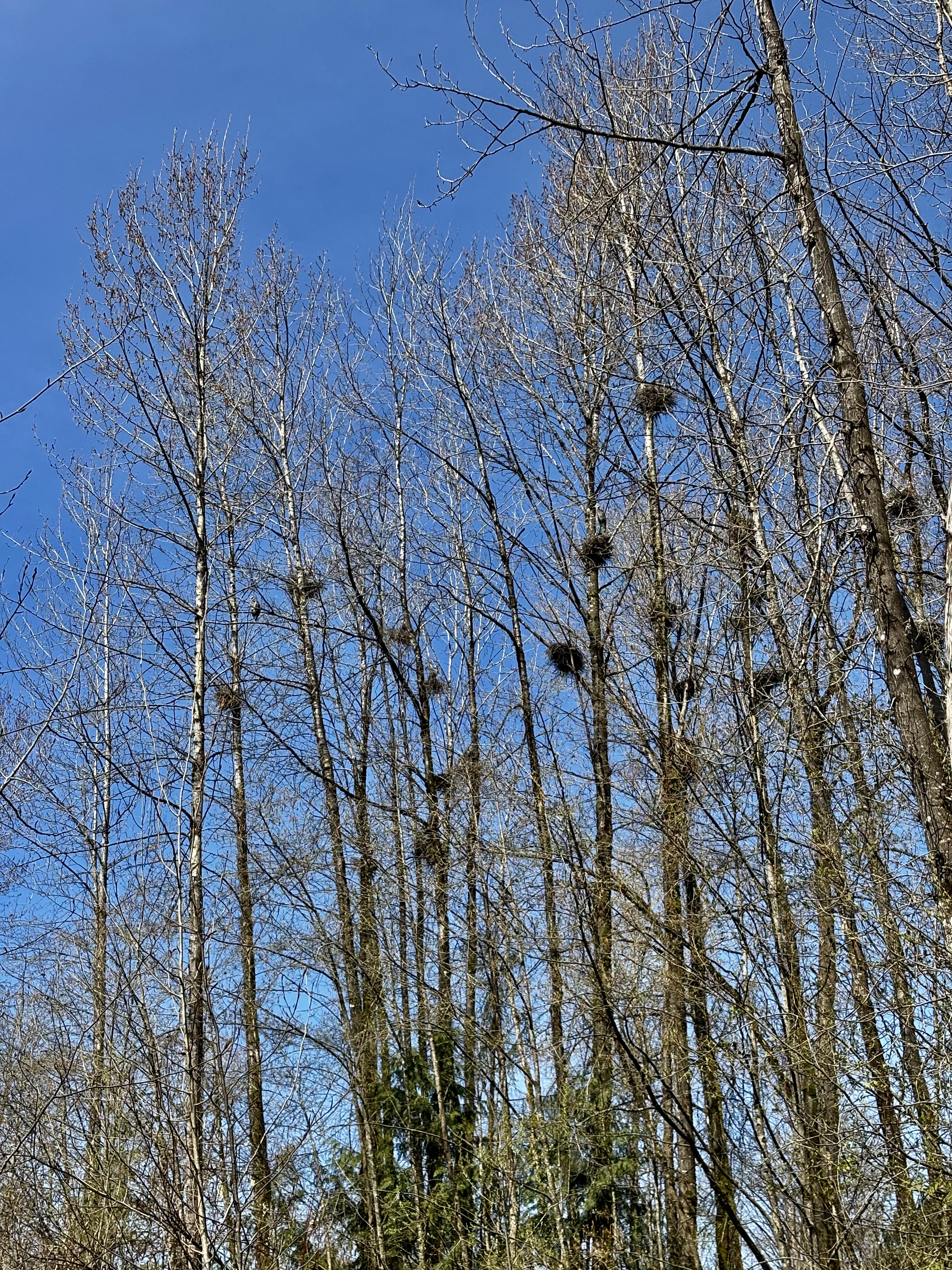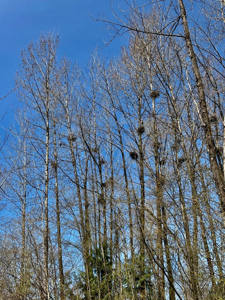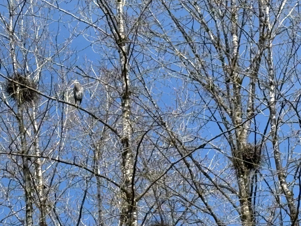 Wow – what a marvellous spring walk and the blue heron nesting colony is such a plus. I can almost smell the ocean. Thanks for taking us along, Penny. Cheers.