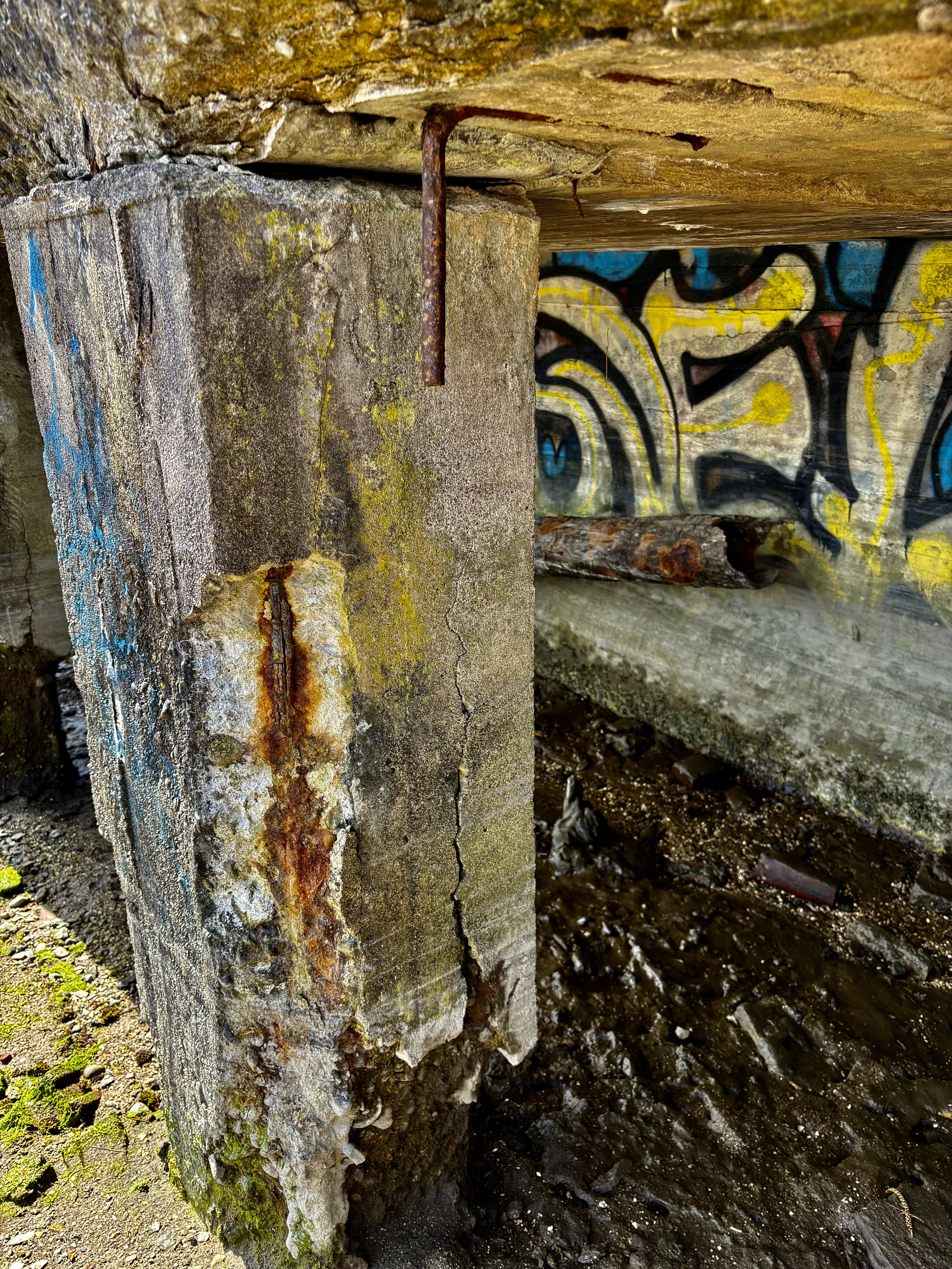 to see some of the industrial decay: rotting supports, shards of brick and, but of course, yer basic bit of 21st-c. graffiti.