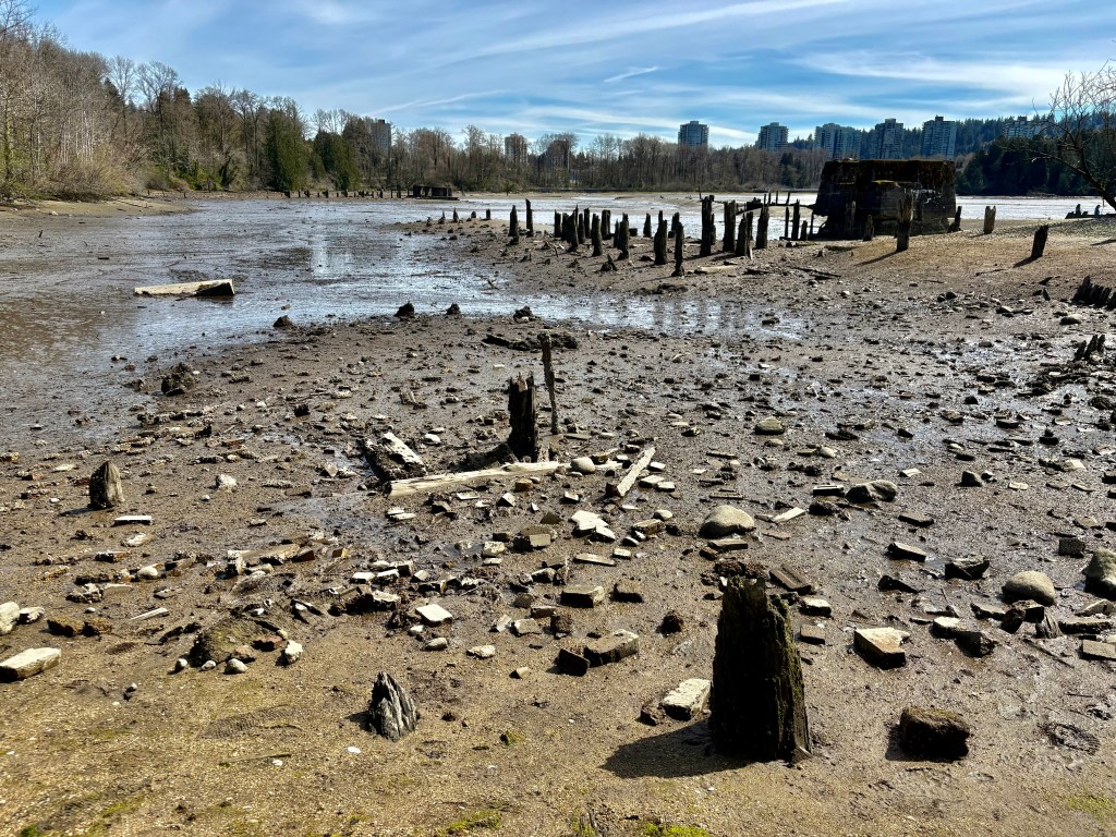 Thanks to low tide, it’s an easy walk out to the lumber mill remnants still to be seen in Old Mill Site Park.