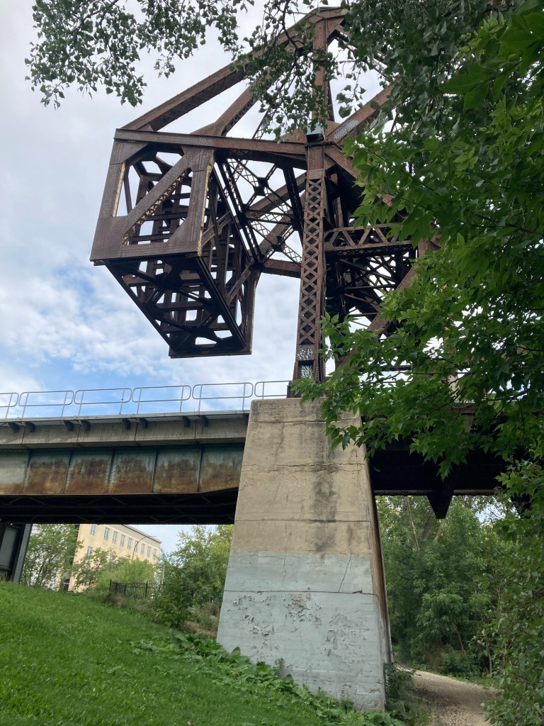 Did you notice the trestle bridge, in the distance of that last photo? Used for military purposes, I’m told, and now the train bridge. I’m drawn to it. I admire the utility of these bridges, their visible geometry and, once I draw near, the majesty (albeit scruffy) of the near end of this particular example.