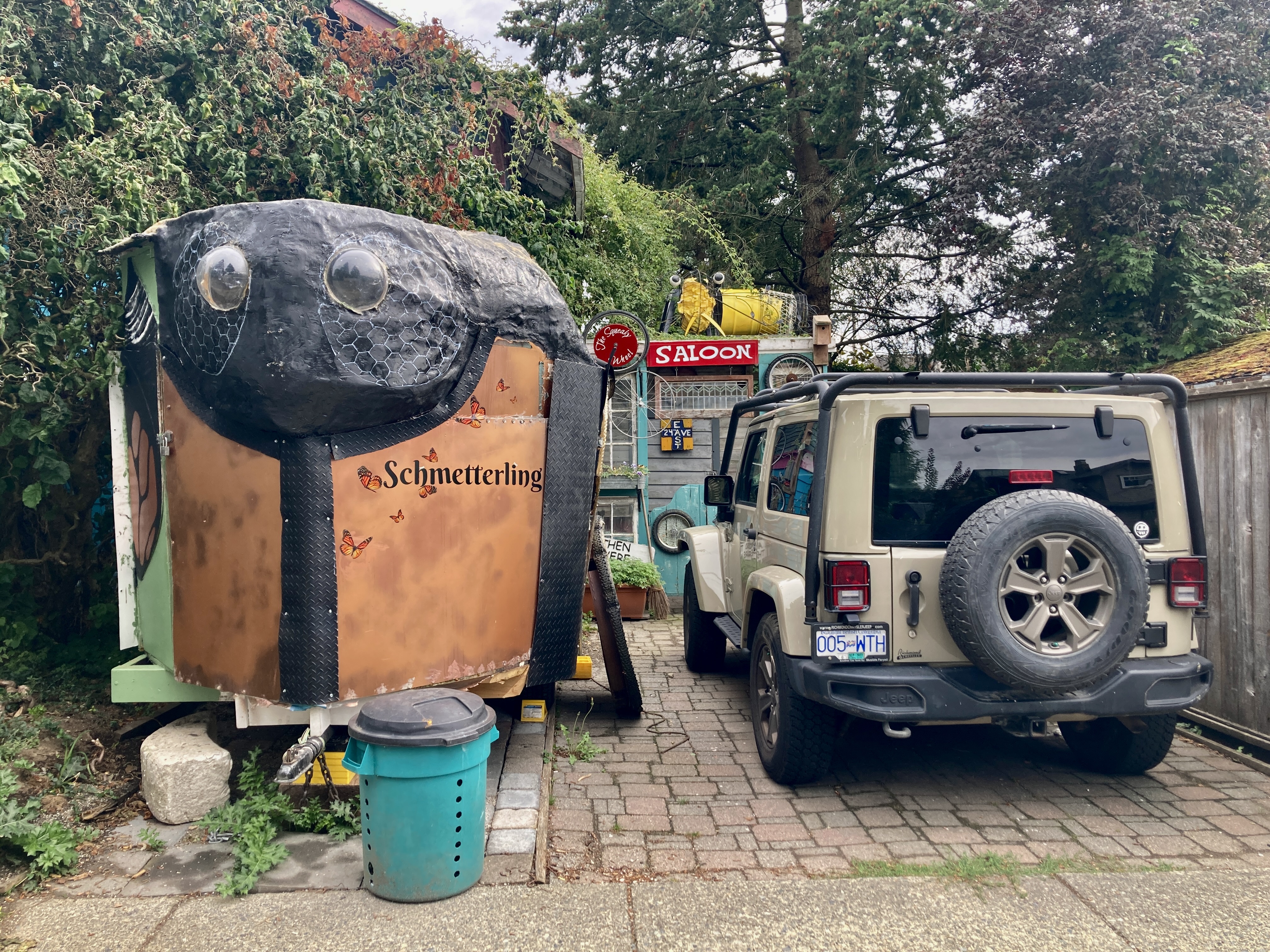 A bit farther north, I’m still caught up in the old/new mix that is Mount Pleasant these days. Low vintage buildings and early (2017 or so) Vancouver Mural Festival artworks mark East 3rd and the alley just off Main Street..