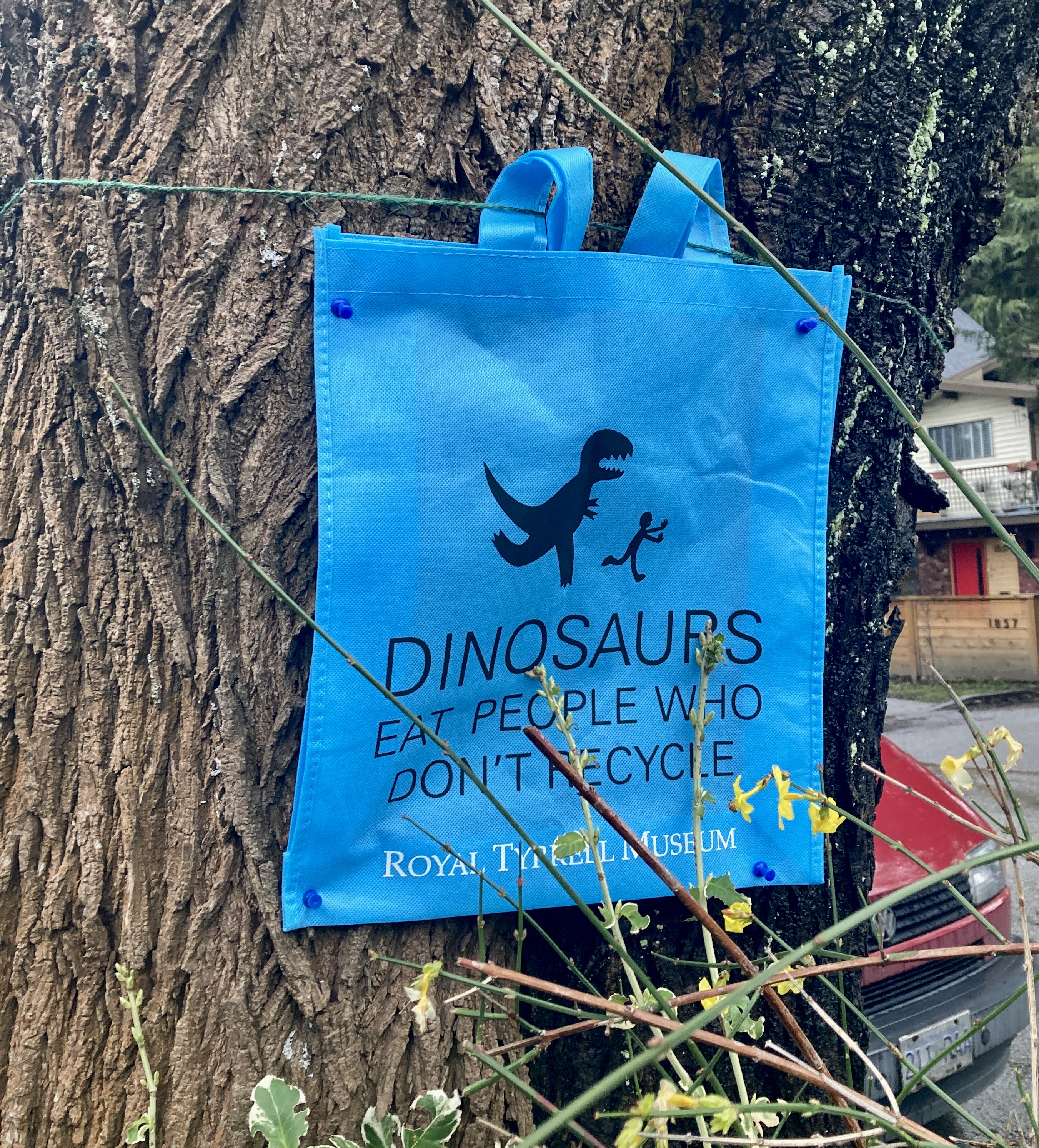 This dinosaur, the other side of the tree informs me, has local friends.