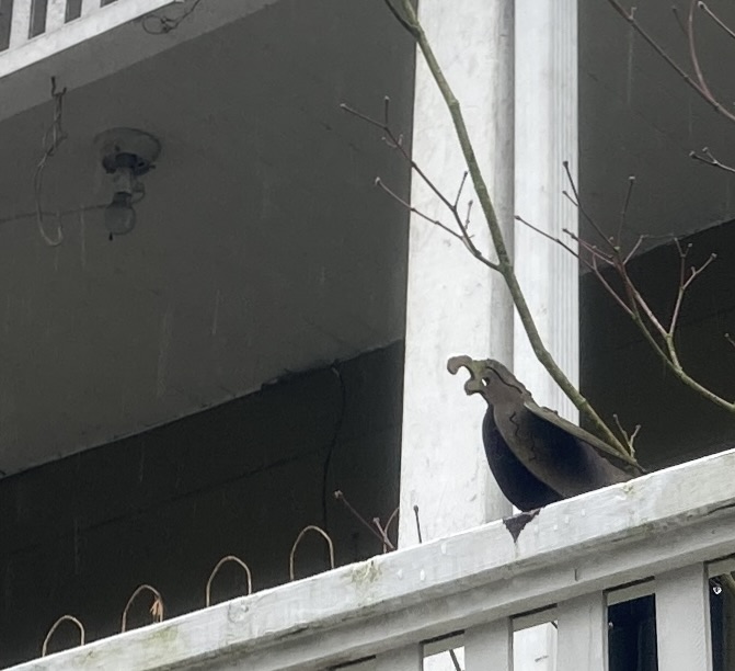 watched over by a metal crow perched on a neighbouring balcony.