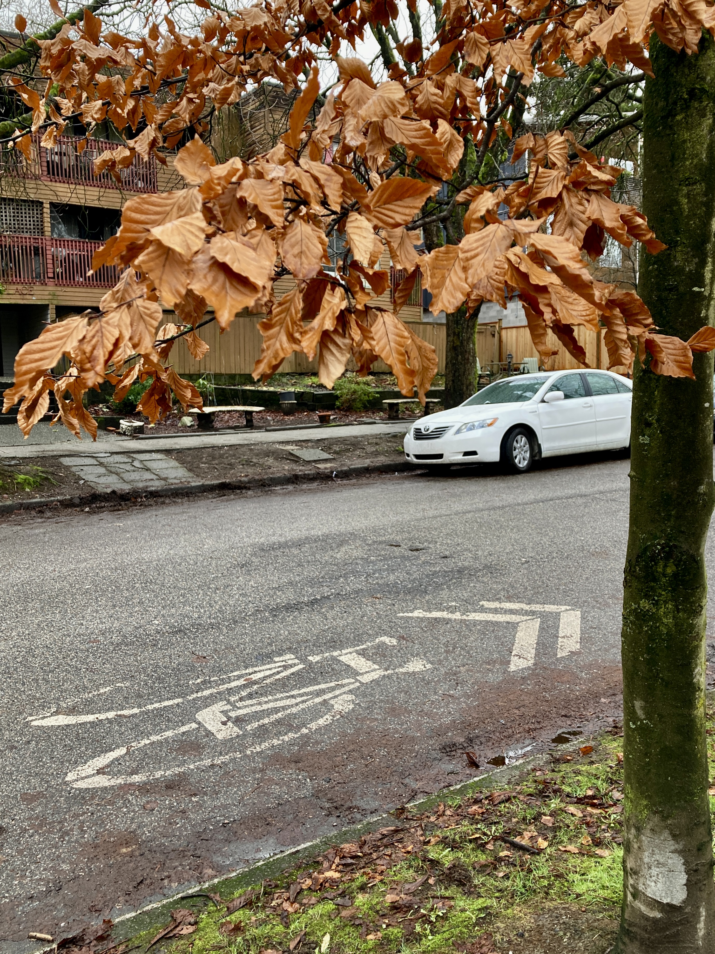 South on Hawks, tracing my way through Strathcona Linear Park, & a pause at another street-RIP tribute. As tender as the one I saw earlier, as full of love & loss.