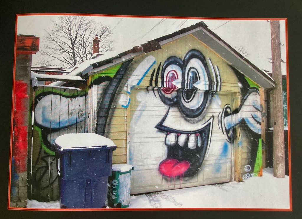 Finally, and not with terrifically high hopes, I take myself across Dundas West and into the alley between Dundas and Darcy Street to the north. I am eager but also dreading to see what it’s like, these days. My memory is of an alley bursting with street art, full of the “garage-door art” that I associate with my memories of Toronto.
