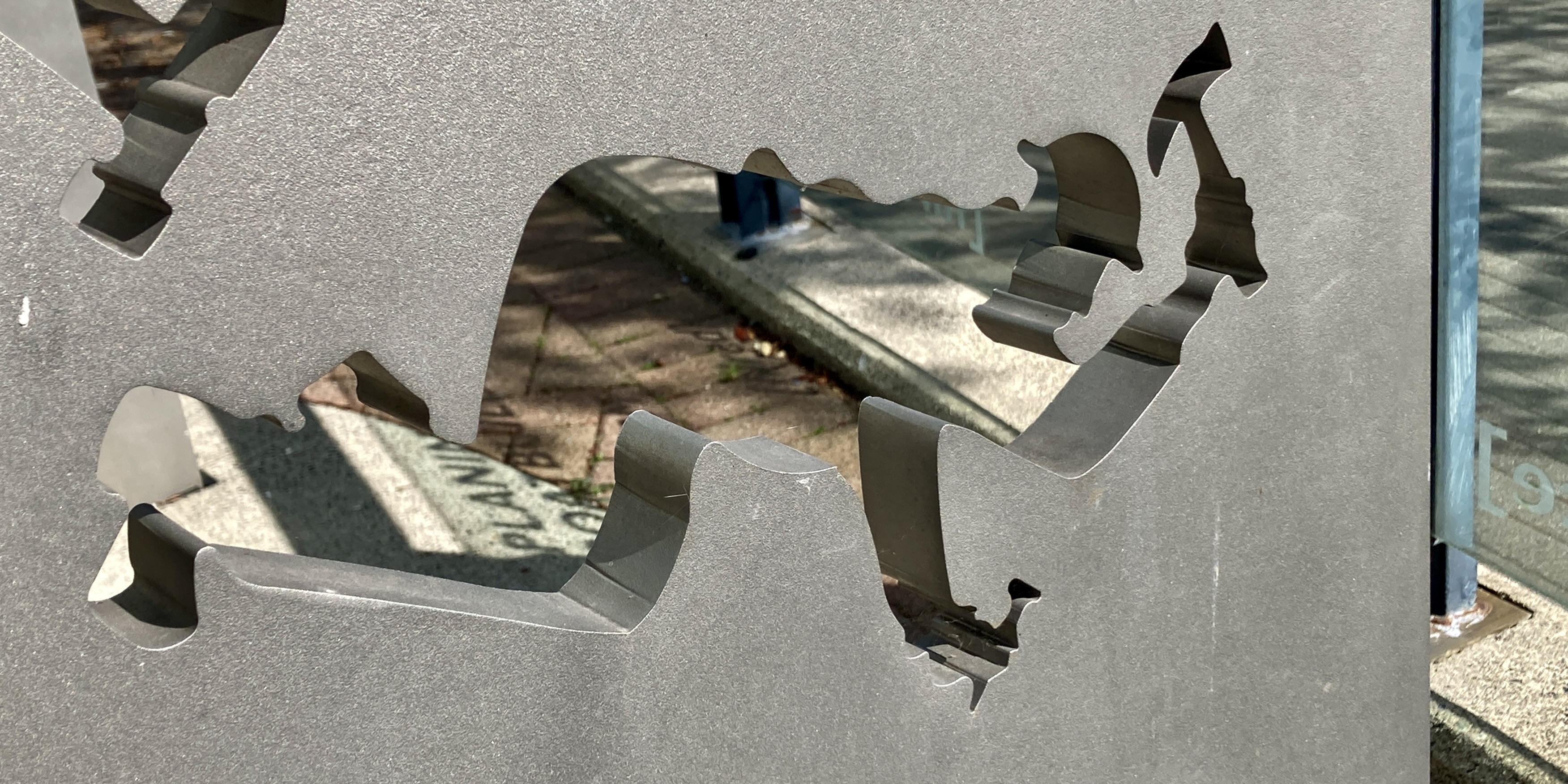 I turn right on a second, N/S, alley, passing delicate tendrils and other art as I go…