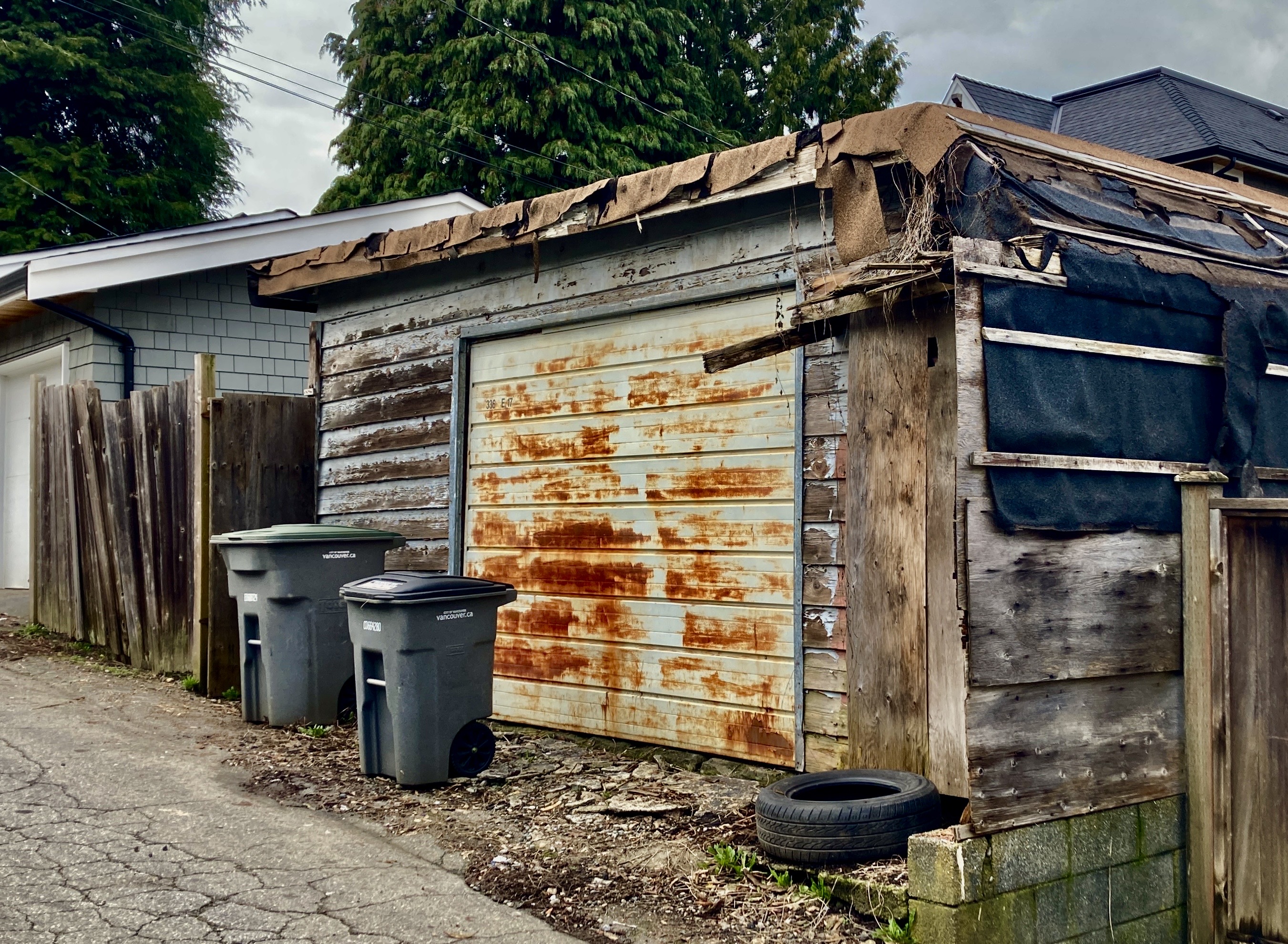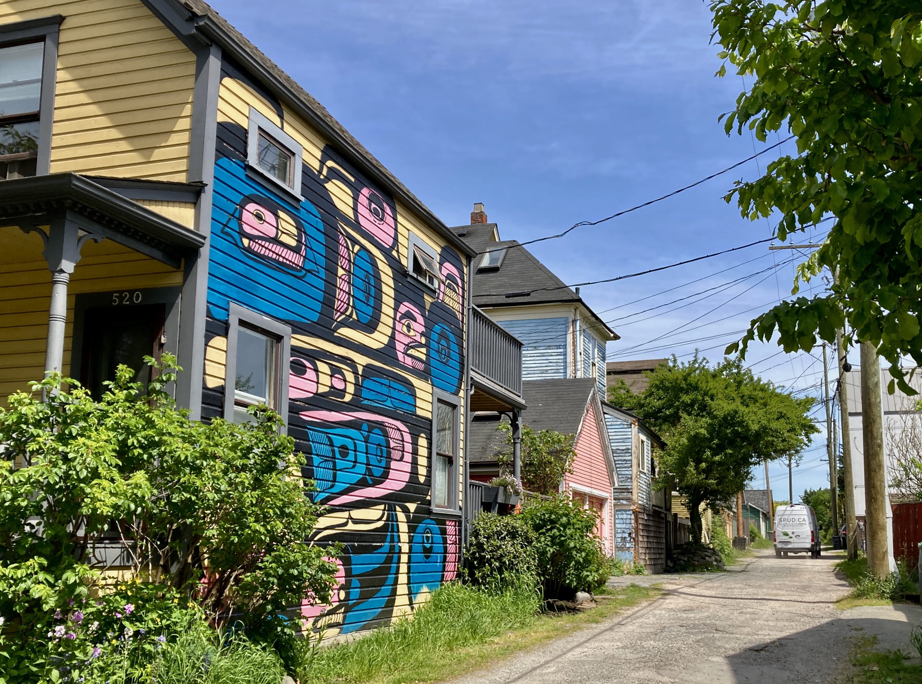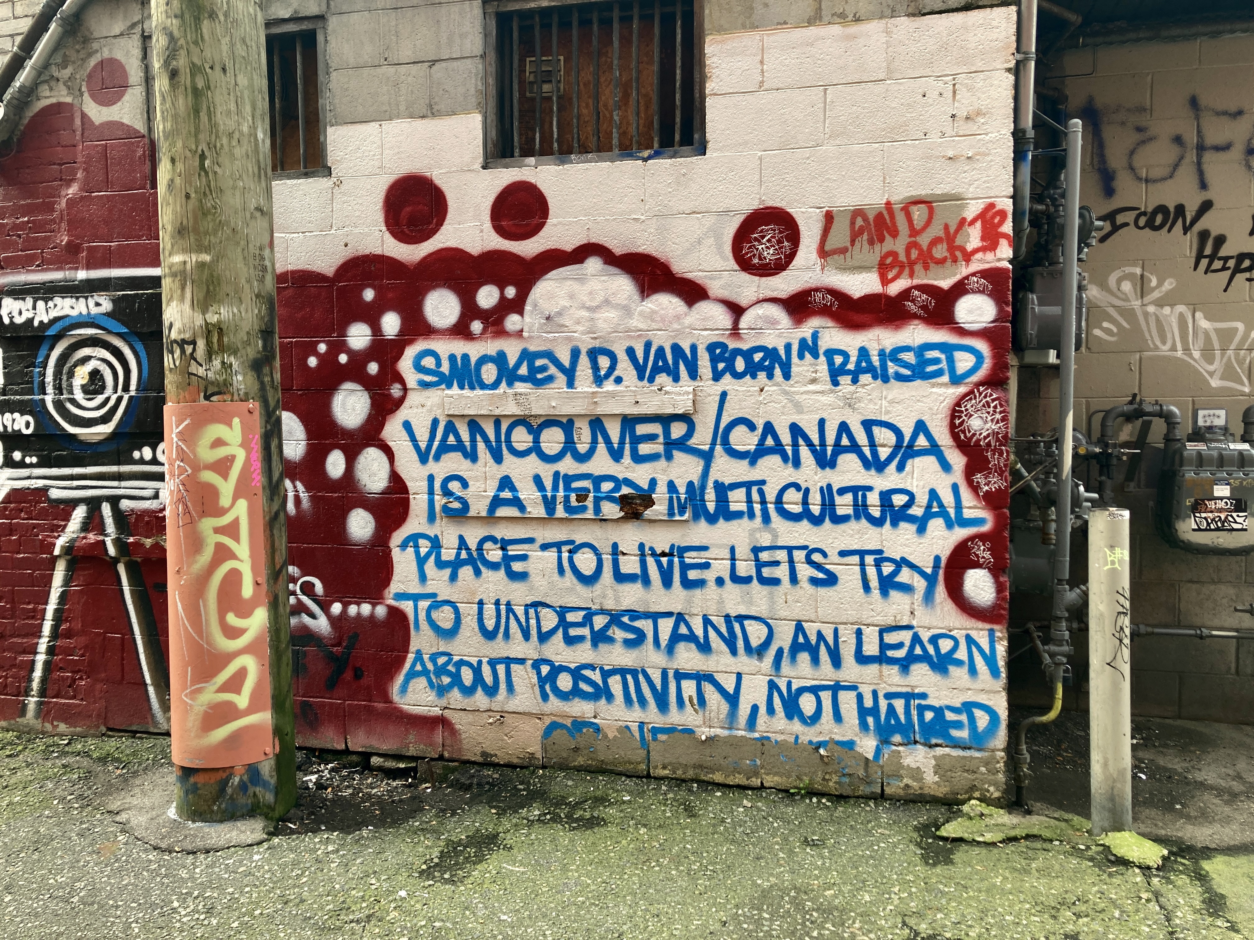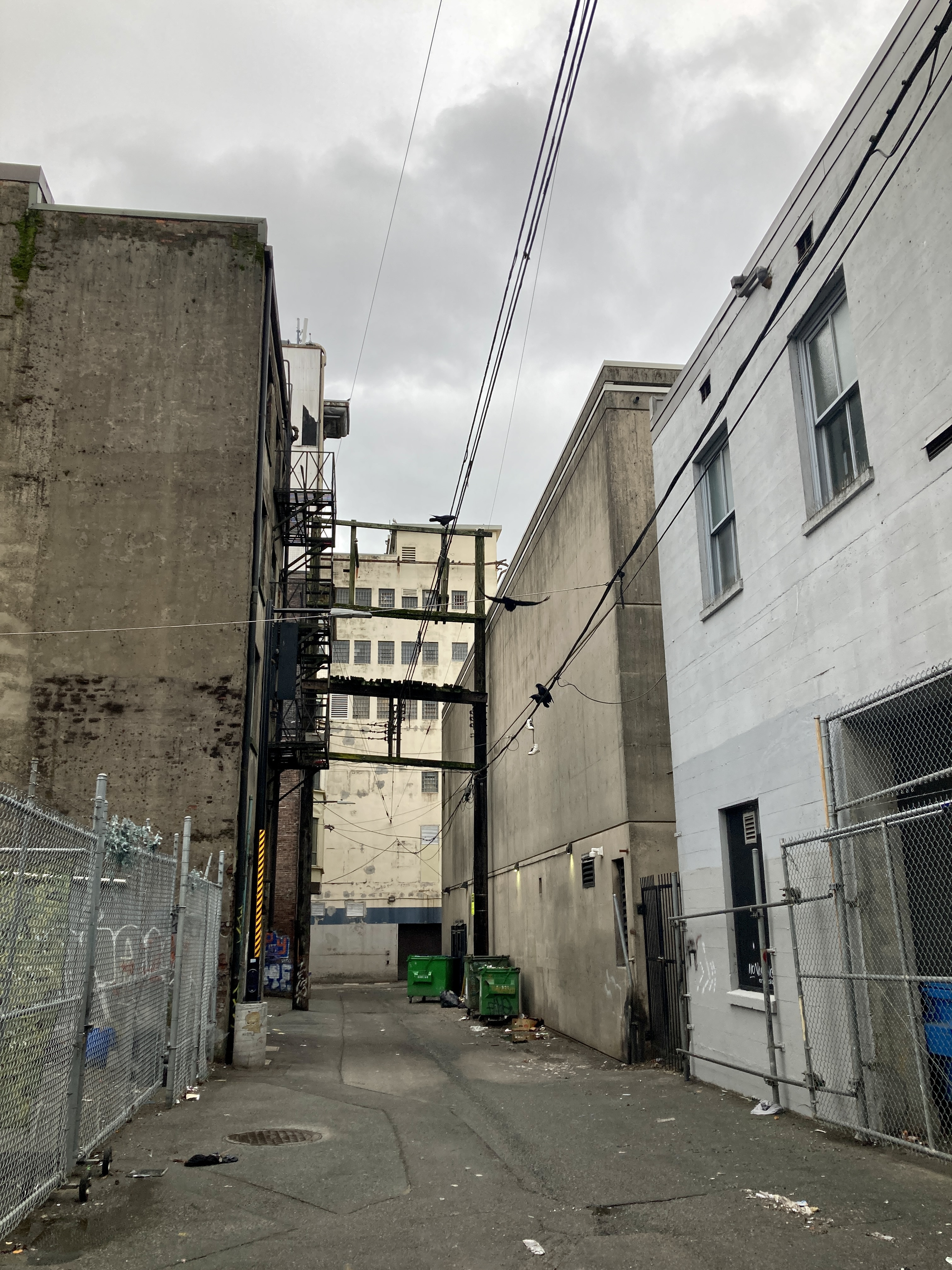 He plucks the phone from my hand, walks over to the wall, and holds this image I took of the alley in Vancouver…