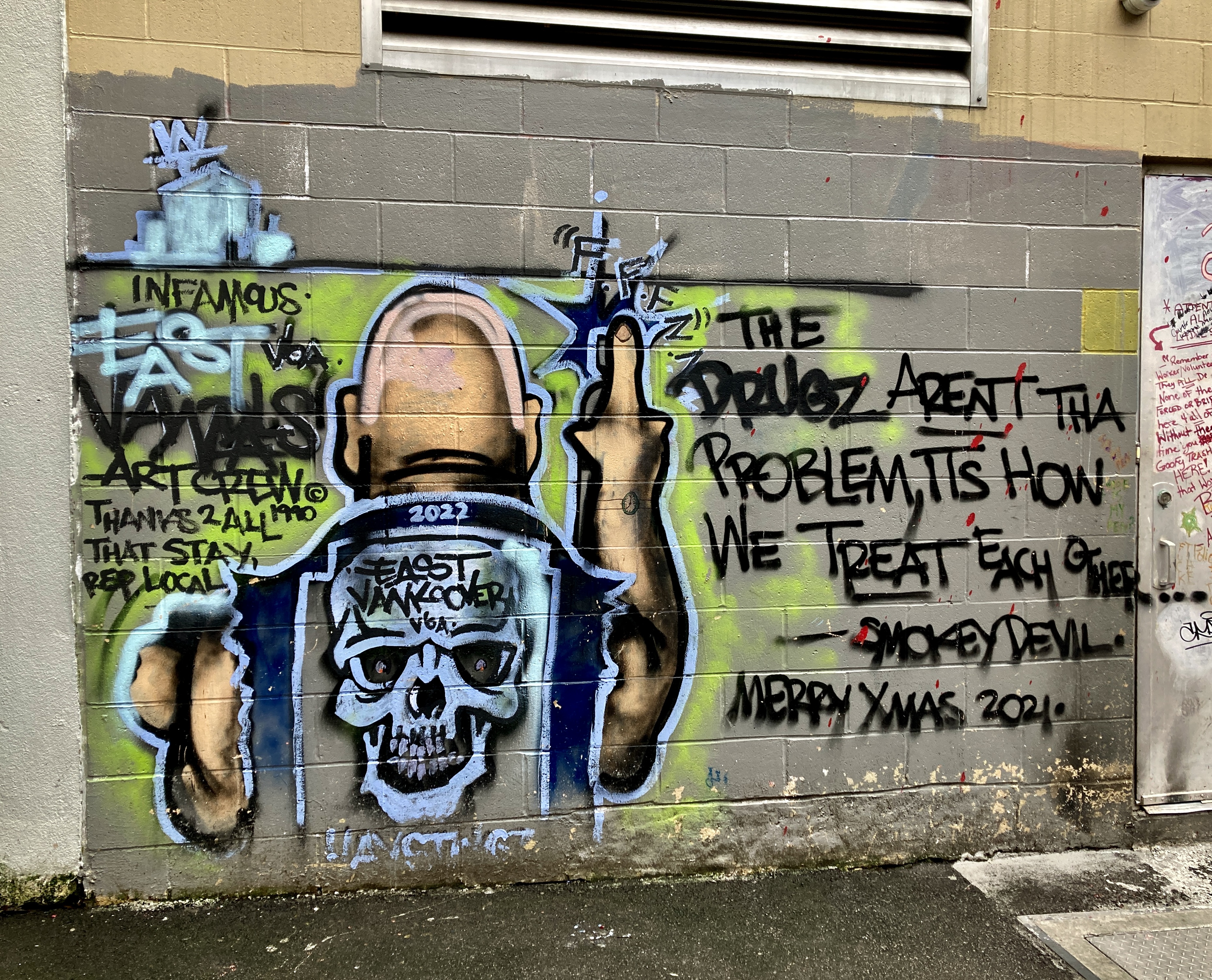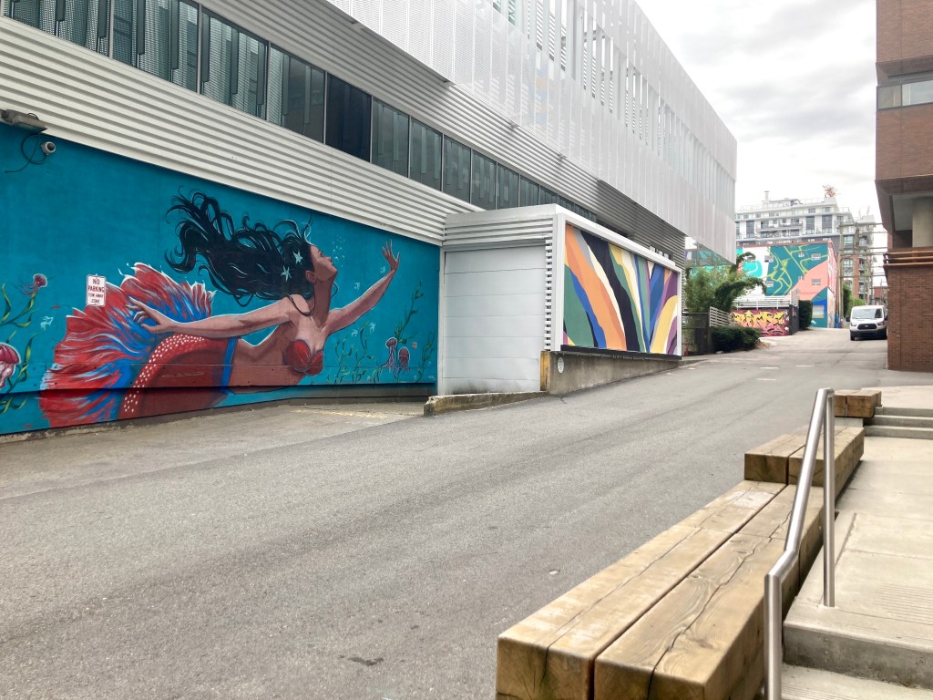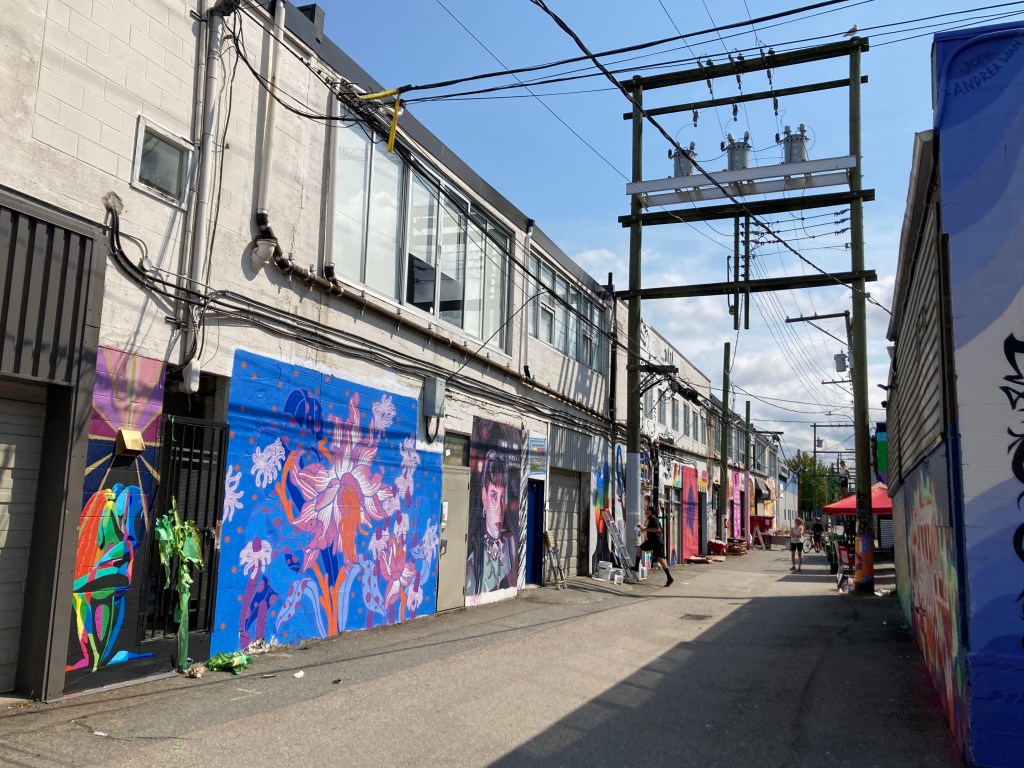 I’m well-pleased with my wrong-bus start to the day. It fed me into this alley, handed me all this unexpected art while on my way to expected art.