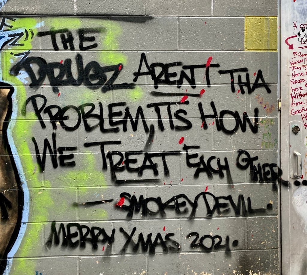 We shake heads at each other and laugh. Art is all over the place! Inside, outside, in galleries, in alleys, bursting 360° through human demographics & world geography, discovered by intention or just by climbing on the wrong bus.