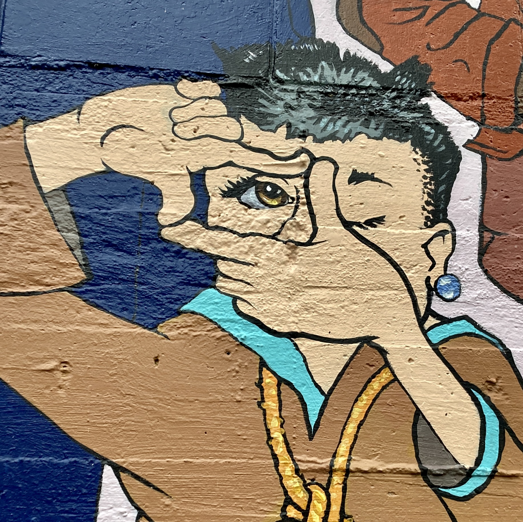 Just as rich a set of stories over on the west side, though the mural is visually much quieter.