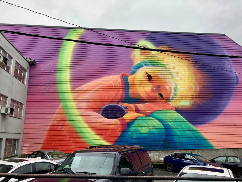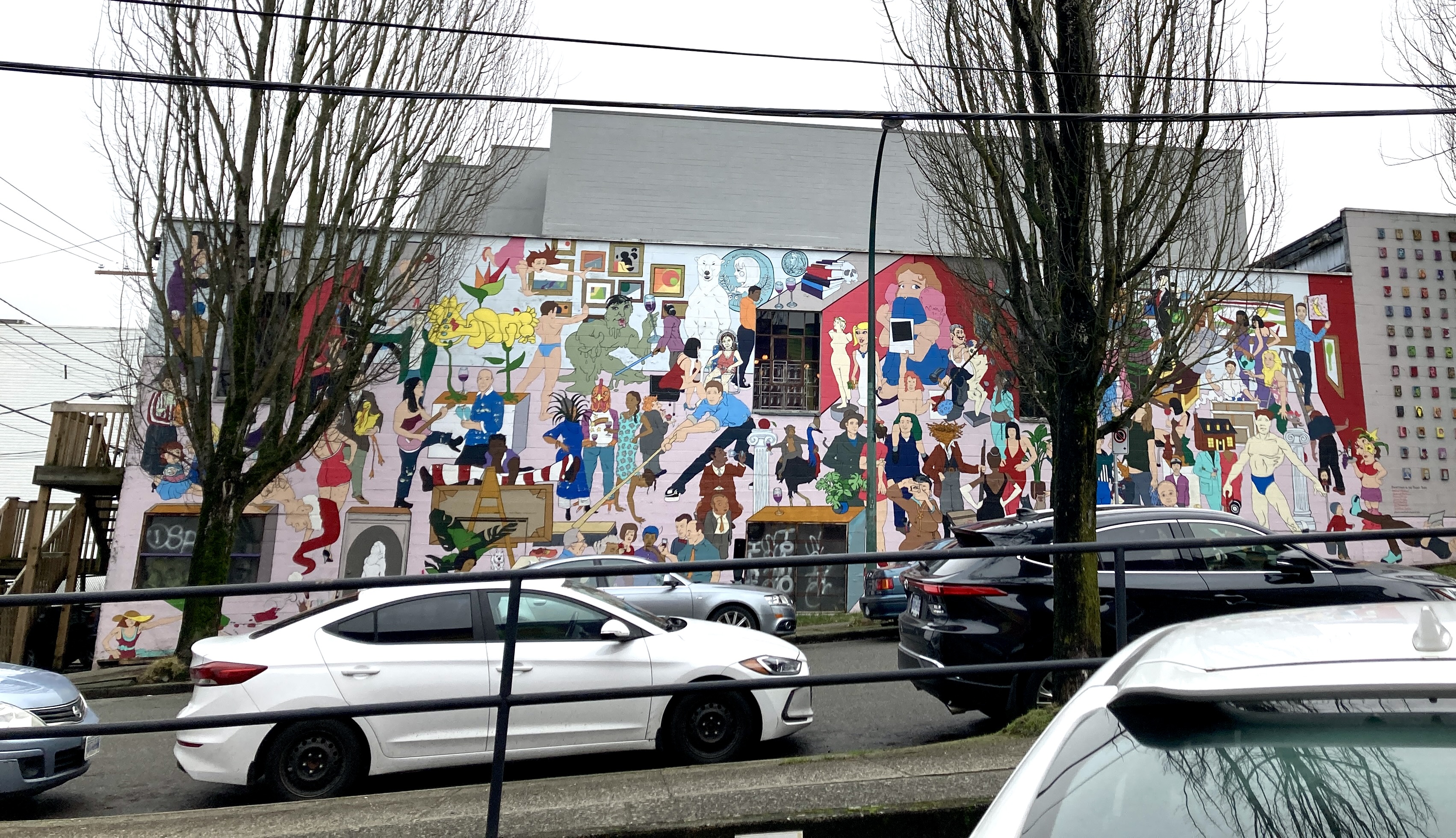 Two gigantic wall murals, each covering some 3,000 square feet, each painted during a Vancouver Mural Festival, and each brimming with further stories.