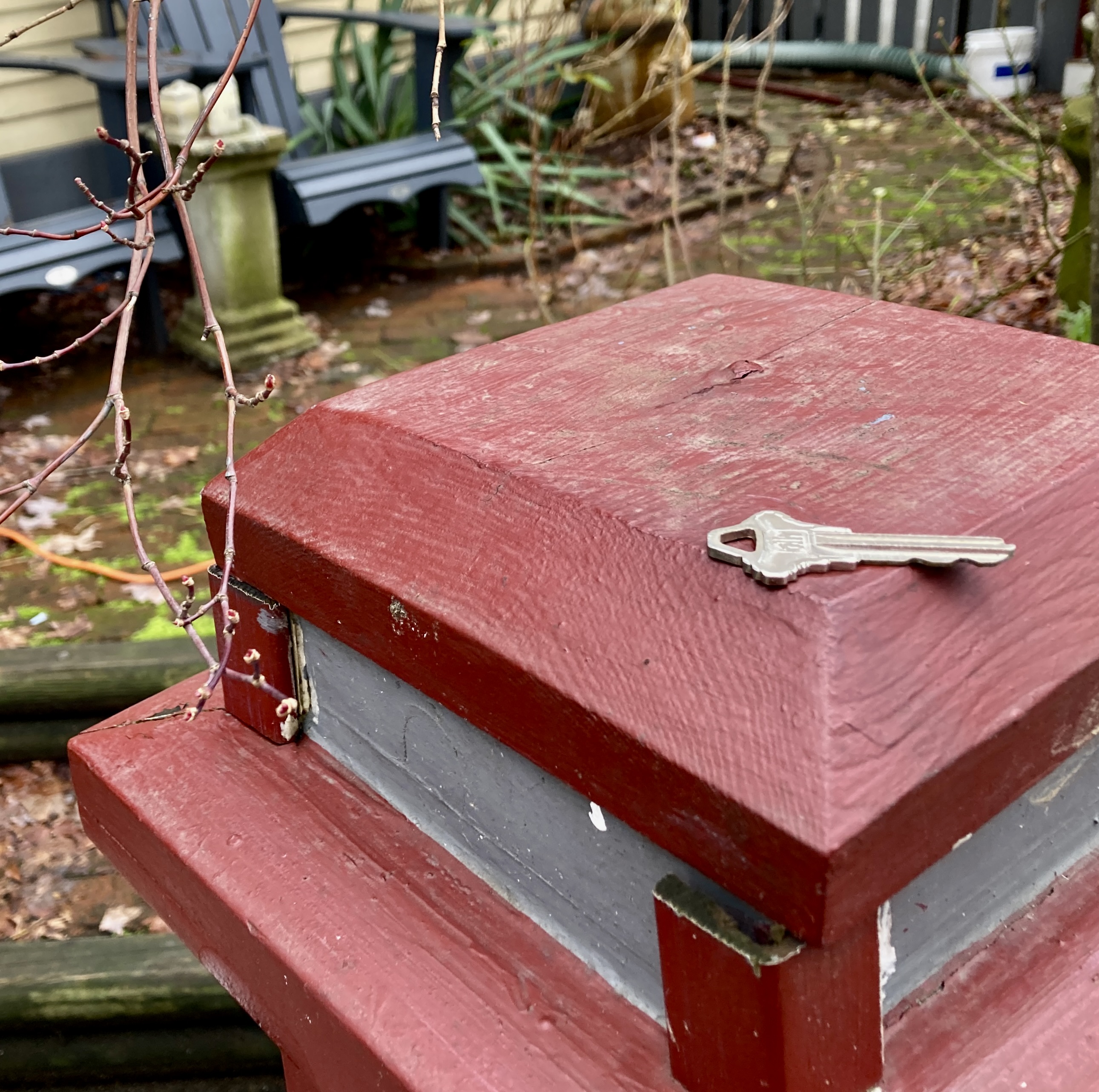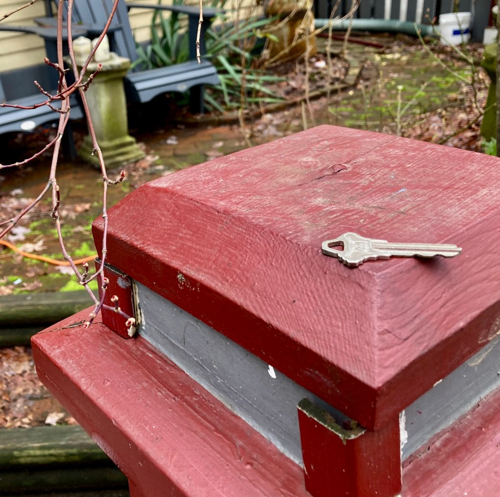 And on their own gatepost, a story of good citizenship. Somebody has dropped a key…