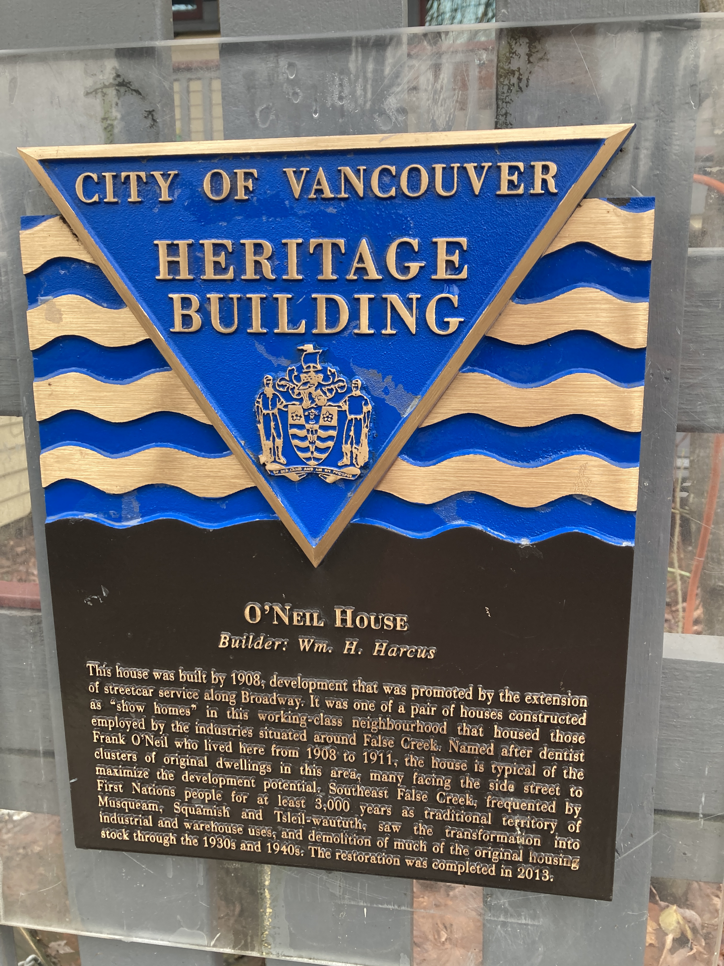 built in 1908 as part of early settler history here on the edges of False Creek, later witness to neighbourhood decline and — cf. its restoration in 2013 — subsequent rehabilitation.