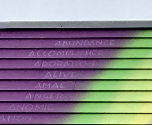 Animalitoland (aka Brazil-born Graziela Gonçalvez Da Silva) created Presence for VMF 2020 — early in our pandemic confusion and isolation. Through direct conversation and via social media, the artist asked people which words best identified how it all made them feel. Then, from A to Z, she wrote those words around her radiantly calming central figure.